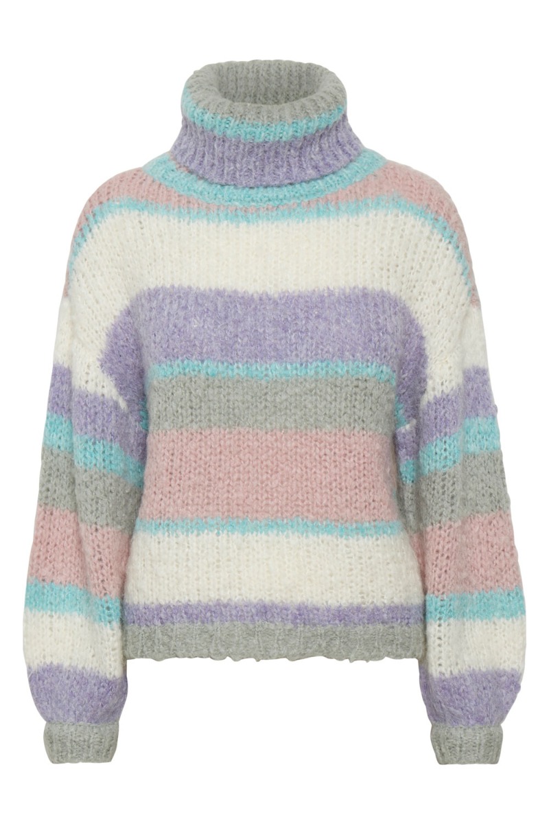 Lækker stribet strik fra Gestuz. Denne strik er designet med rullekrave i det blødeste materiale og de skønneste nuancer. Style denne strik både til sommerhus hygge eller hverdag med et par jeans.