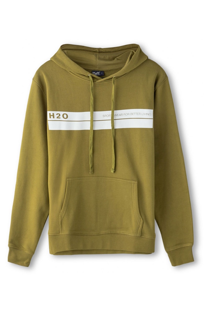 Cool hoodie fra H2O i den sejeste grønne nuance der er designet med to hvide striber foran og H2O logo. Sweaten er med hætte og snøre samt en kængurulomme på fronten der gør det nemt at have sin mobil og andre ting med sig. Style den med de matchende bukser og skab et sporty look.