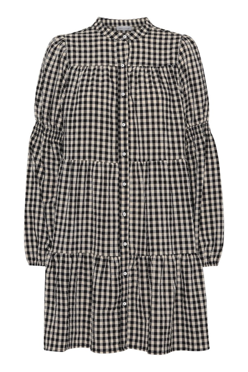 Continue - Kjole - Sanna Small Check Dress - Check Black/Sand