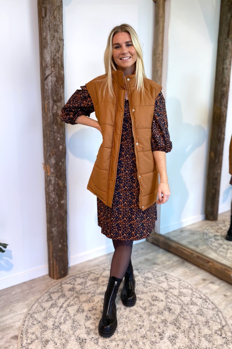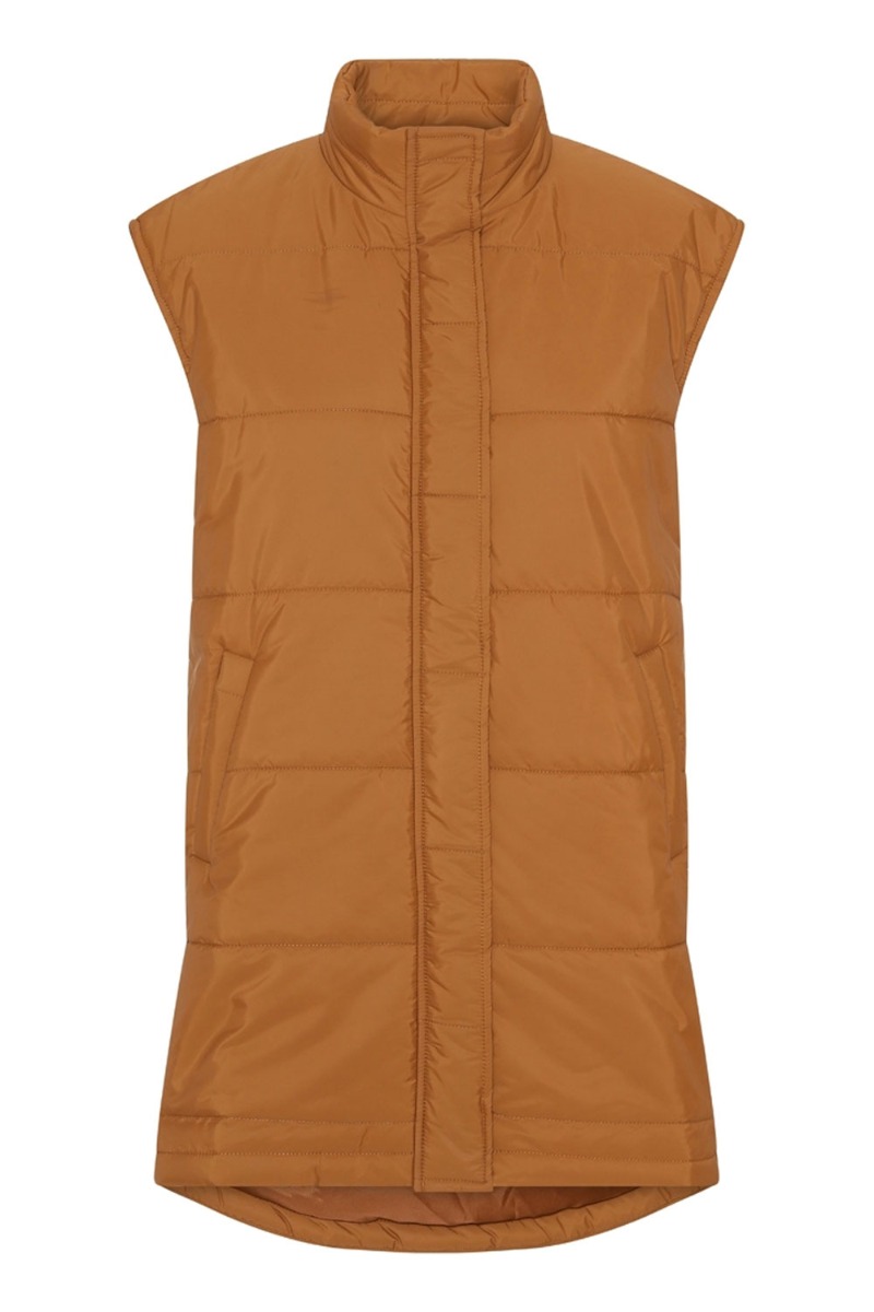Cool oversize vest fra A-View i et puffet look. Den høje hals lukkes foran med lynlås og trykknapper. Vesten er perfekt som overgangsjakke med en varm strik under de kølige dage og findes også i en lys beige.