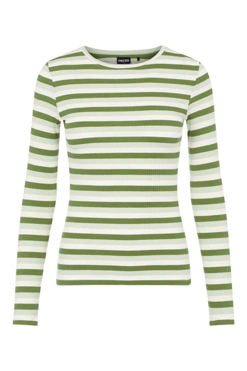 Fin stribet bluse fra Pieces I grønne nuancer. Blusen er lavet i en lettere tætsiddende model med masser af stræk i et utrolig blødt materiale. Den er perfekt at have i garderoben til at style alene eller under dine styles.