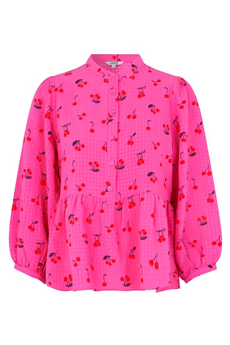 Den fineste pink bluse fra mbyM i det smukke kirsebærprint. Blusen har 3/4 lange ballonærmer der knappes med en lille knap som afslutning. Blusen knappes foran og har en virkelig taknemmelig pasform. Styles nemt til et par jeans eller bukser.