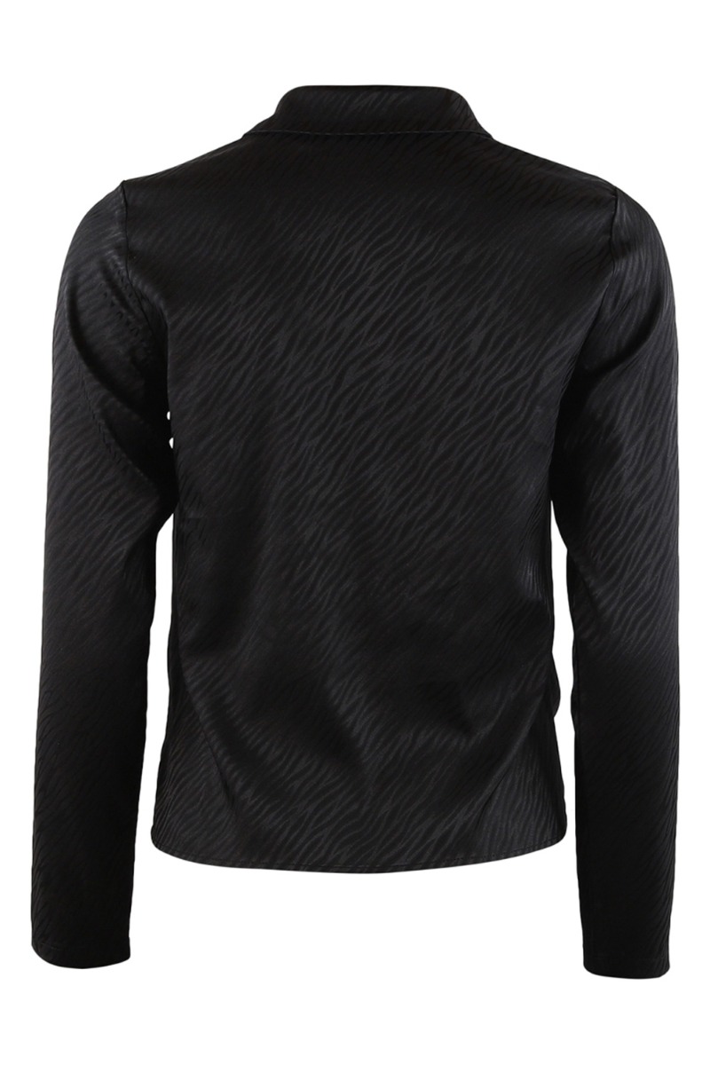 En feminin bluse fra Continue i sort med et diskret zebra print. Blusen har rynkedetaljer foran der gør den ikke sætter sig ind på ens "folder". Den er lettere tætsiddende med lange ærmer og knapper foran. Style den til et par bukser til både arbejde, fest og hverdag.
