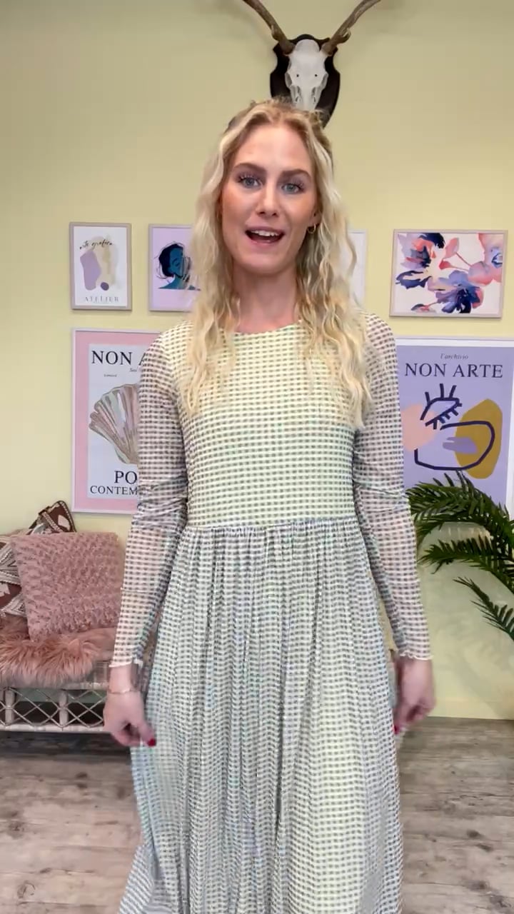 Fineste mesh kjole fra Nümph er landet på lager! Et fint ternet print med blålige, gule og lyserøde nuancer - perfekt til forårets lyse dage