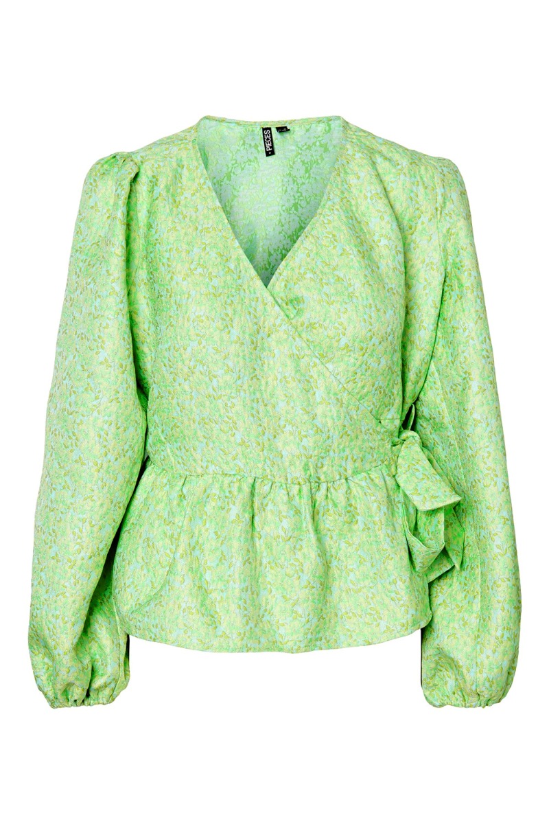 Pieces - Bluse - PC Eli LS Wrap Top - Daiquiri Green Small Flowers