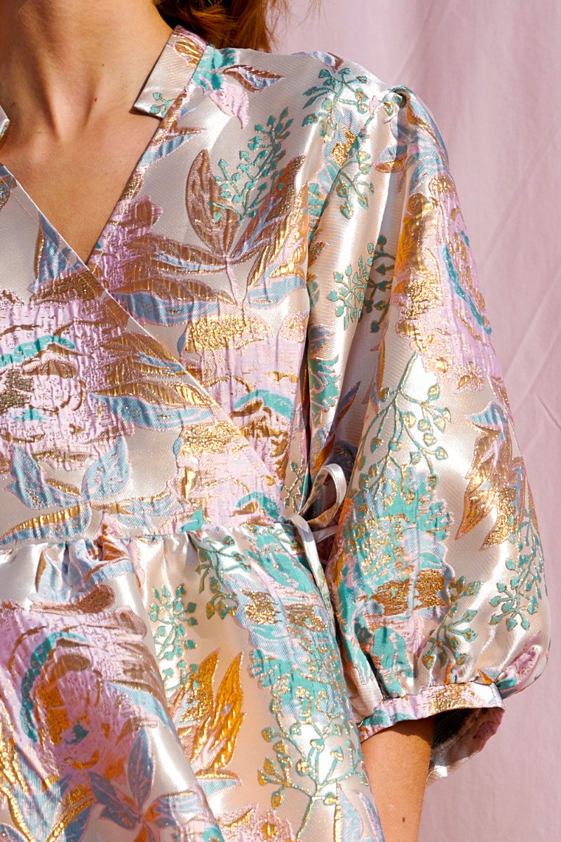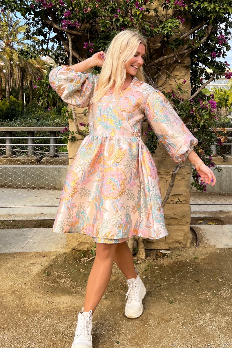 Der er ingen tvivl om at vi er ELLEVILDE med Aya kjolen og den bliver bare ved med at give LYKKE. Kjolen er i et volumiøst design med masser af shineeffekt og glimmerdetaljer. Det er en klassisk slå-om kjole, men skørtet har en flot strutskørt effekt. Hvis skal går drømmer om en eventyrkjole, så siger vi helt klart GO for den her skønhed af en kjole!