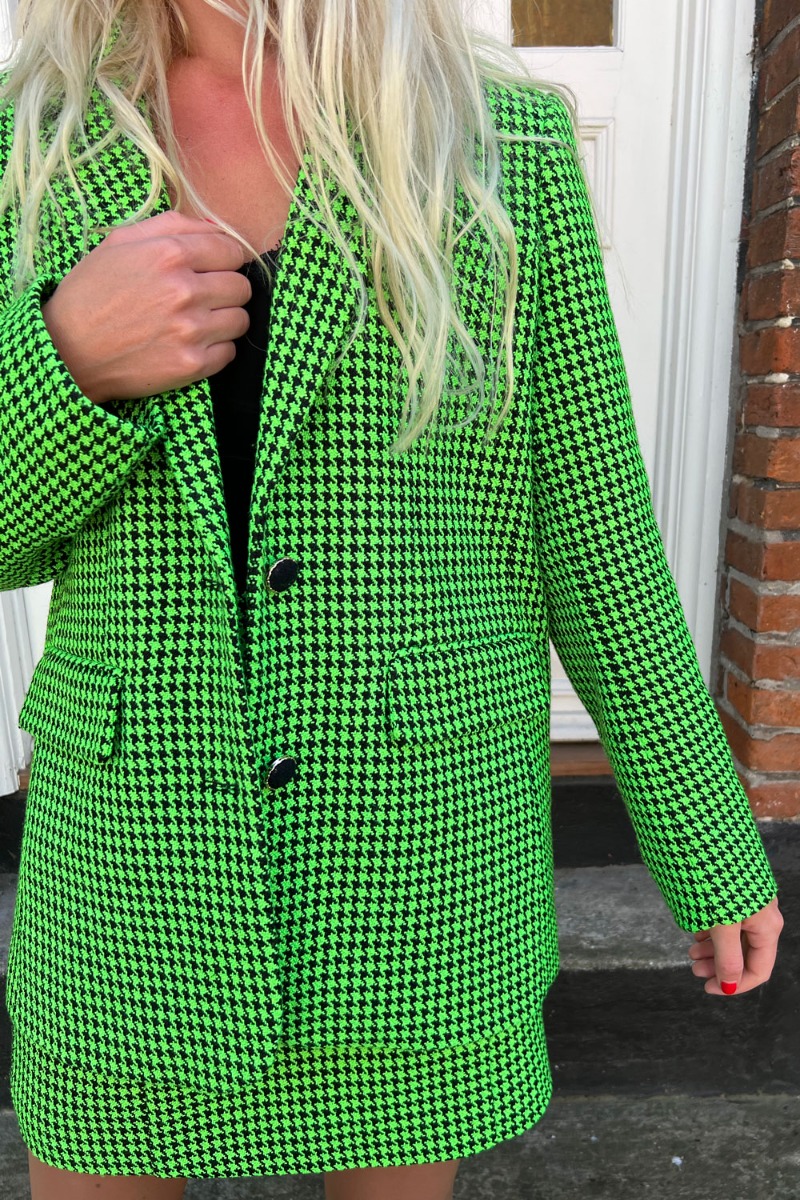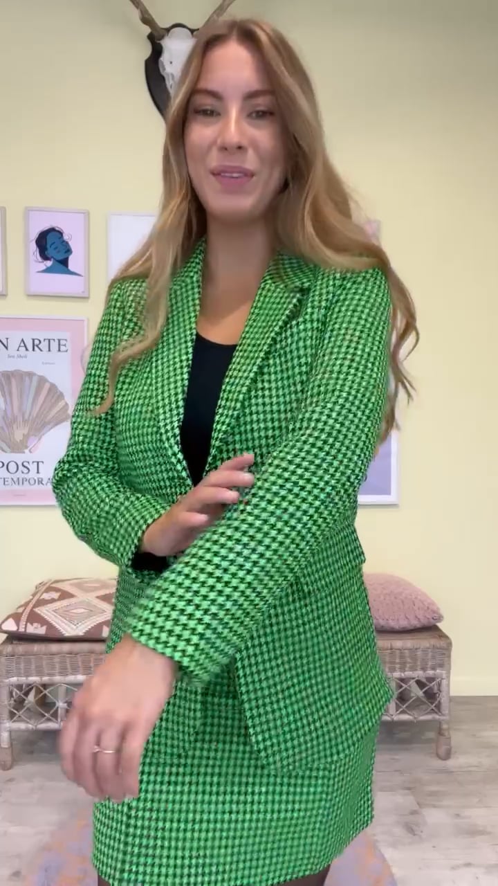 Denne her blazer fra Y.A.S er simpelthen SÅ sej! Blazeren er ternet med grøn baggrund og med sorte knapper med gulddetalje og lommer foran. Super cool at bruge over jeans og en t-shirt eller som sæt til den matchende nederdel.