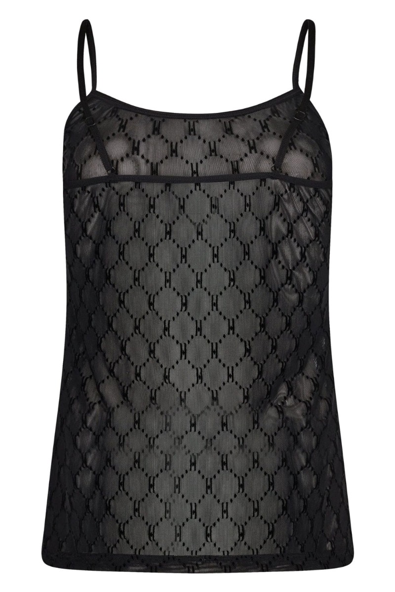 En super sej top fra Hype The Detail som er tænkt som en undertrøje den kan giver effekt til en måske V halset bluse. Den er gennemsigtig med H motivet over det hele samt den findes også i brun.