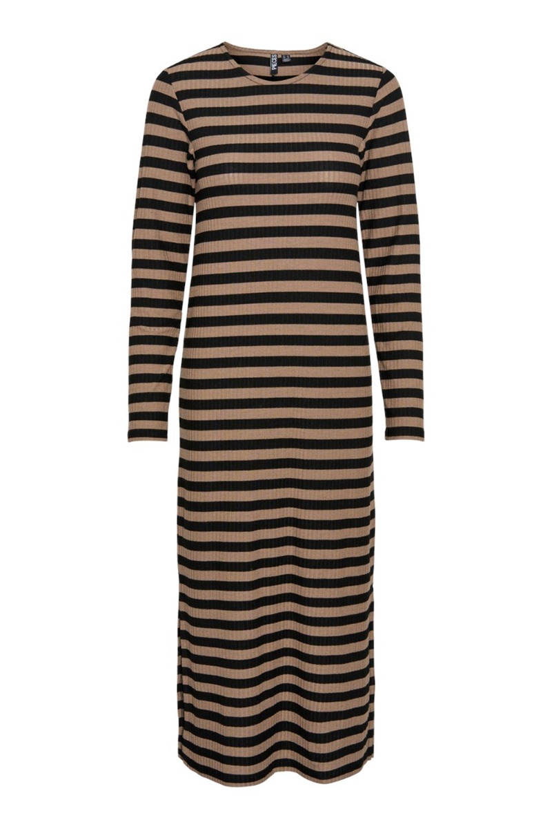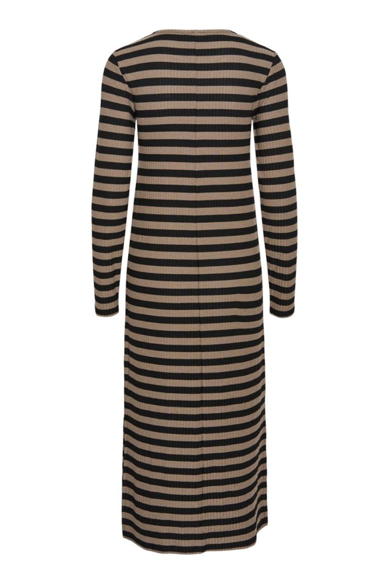 Pieces - Kjole - PC Filine LS O-neck Midi Dress Kac - Black Fossil