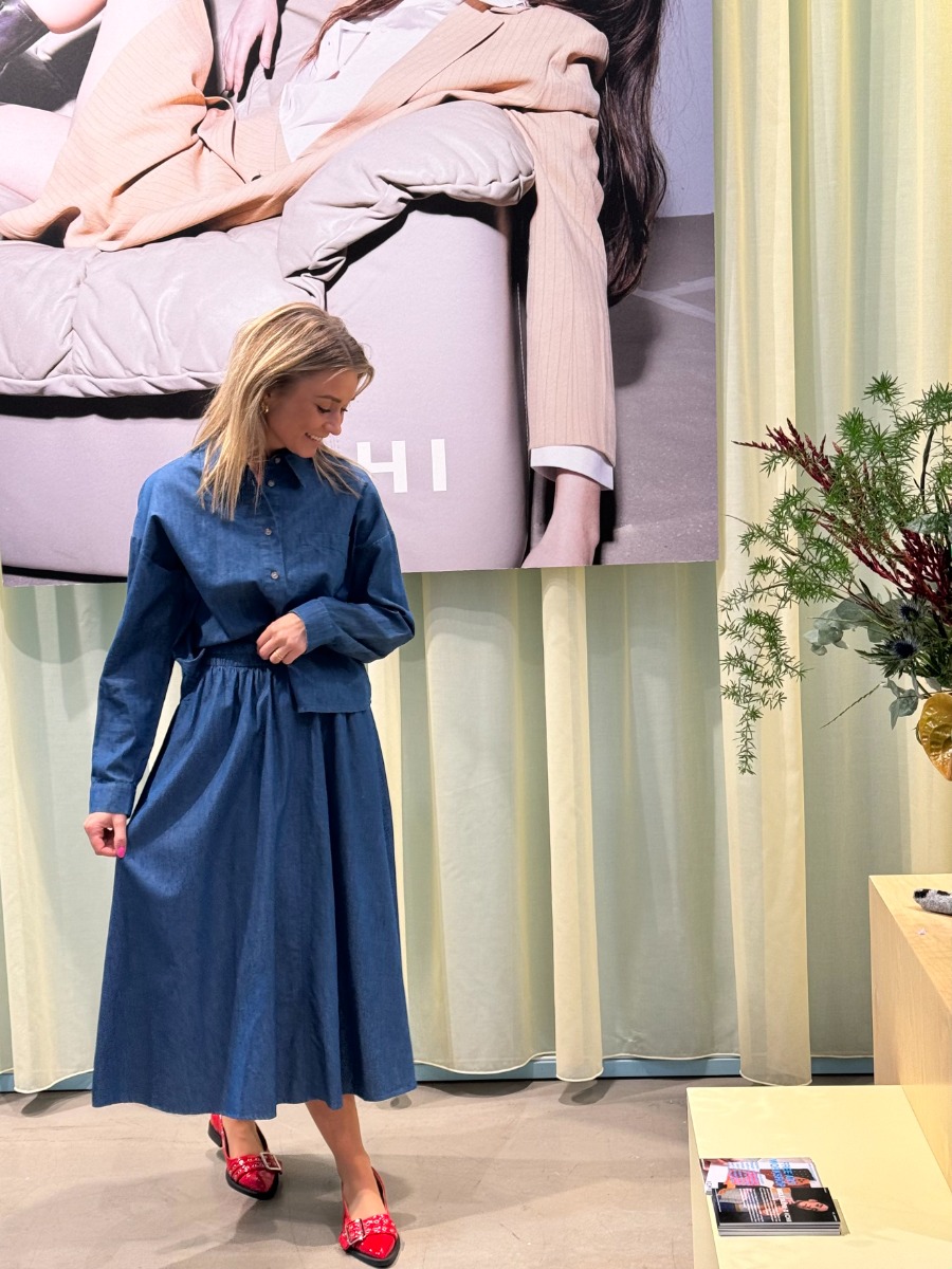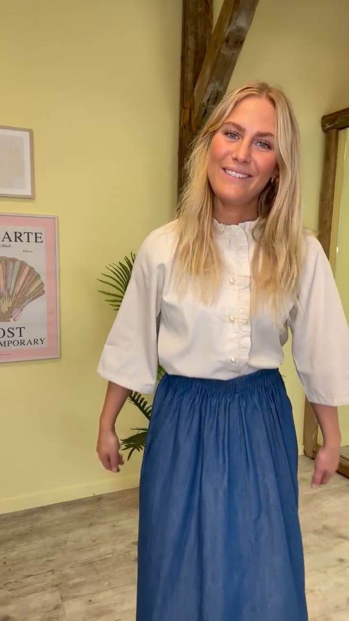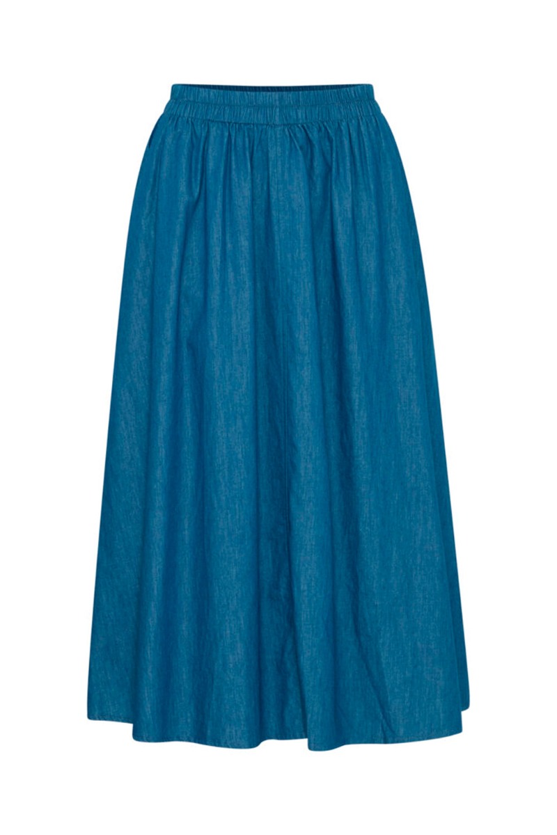 Nederdel i super blød denimkvalitet fra Ichi. Nedelden er ankellang og har elastik i taljen. Der findes en matchende skjorte i samme materiale.