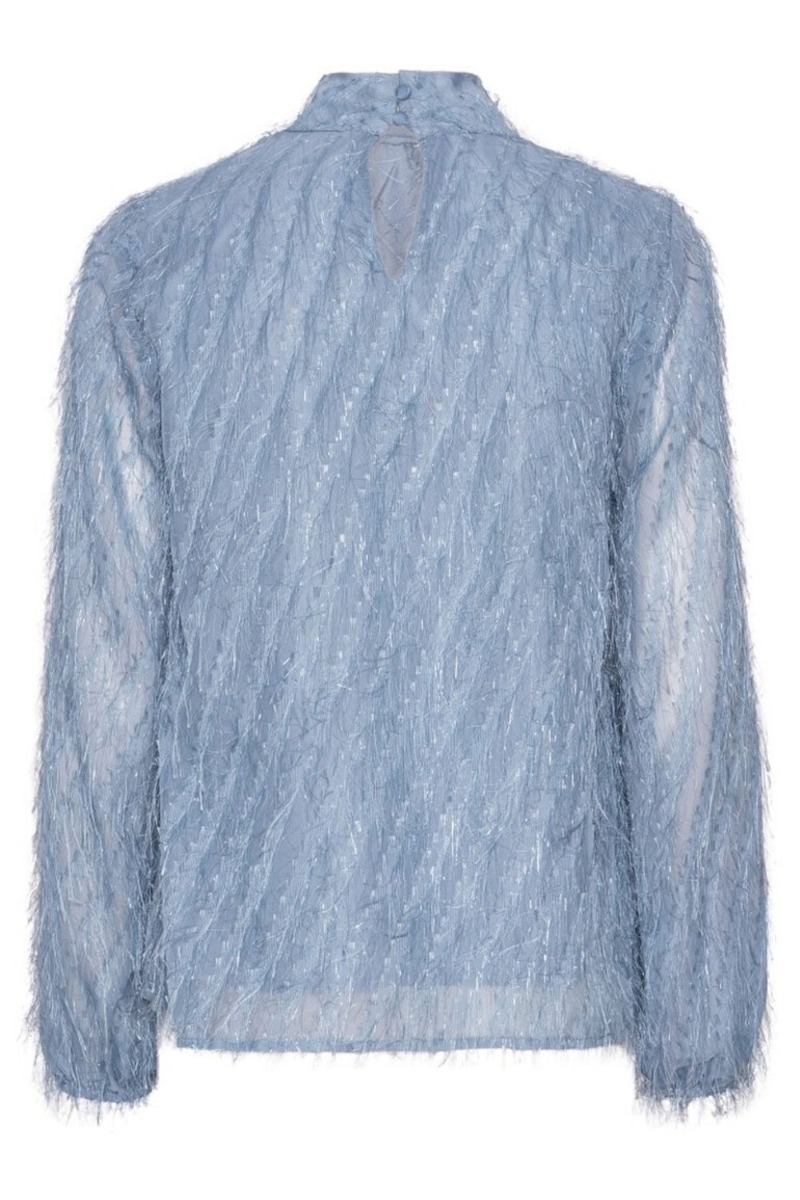 En fin bluse som kan give lidt ekstra til dit outfit fra A-View. Denne bluse lukkes i nakken med knapper og har en smule ballon ærmer. Derudover er stoffet med 3D effekt i et fjer look. Den er super sej sammen med et par neutrale bukser eller til en nederdel.