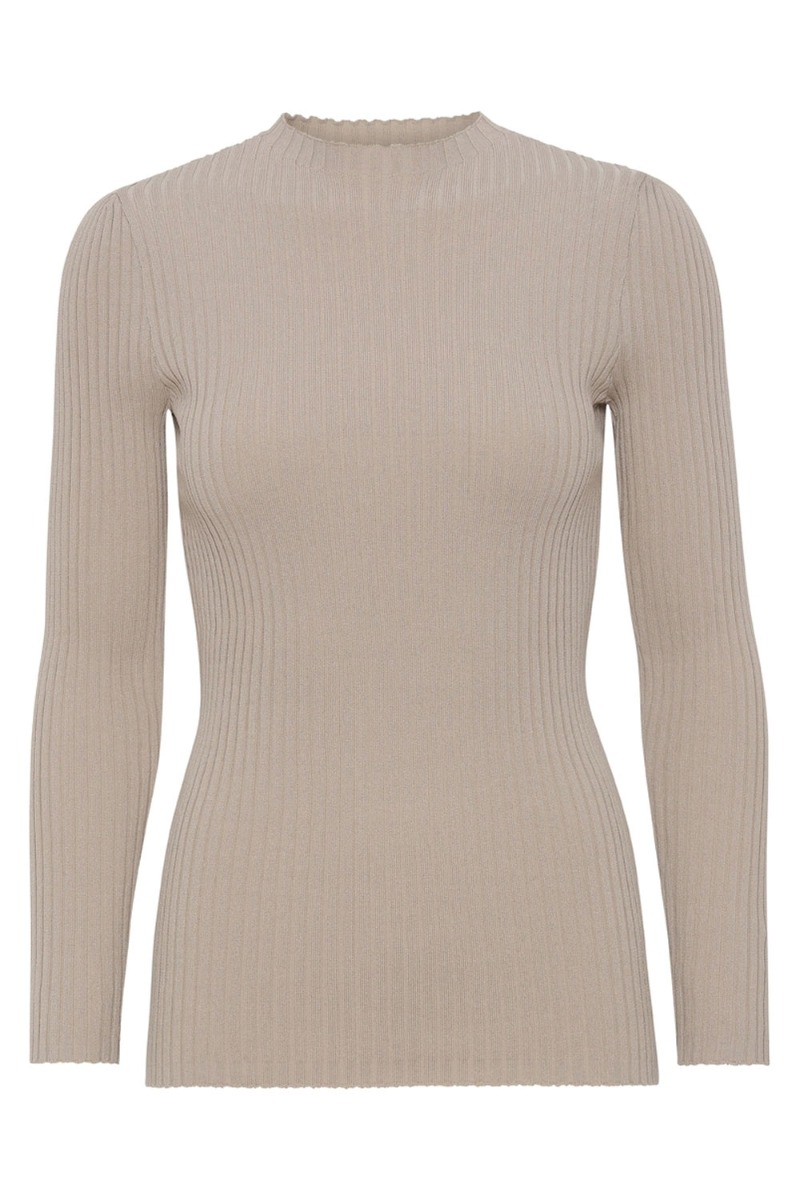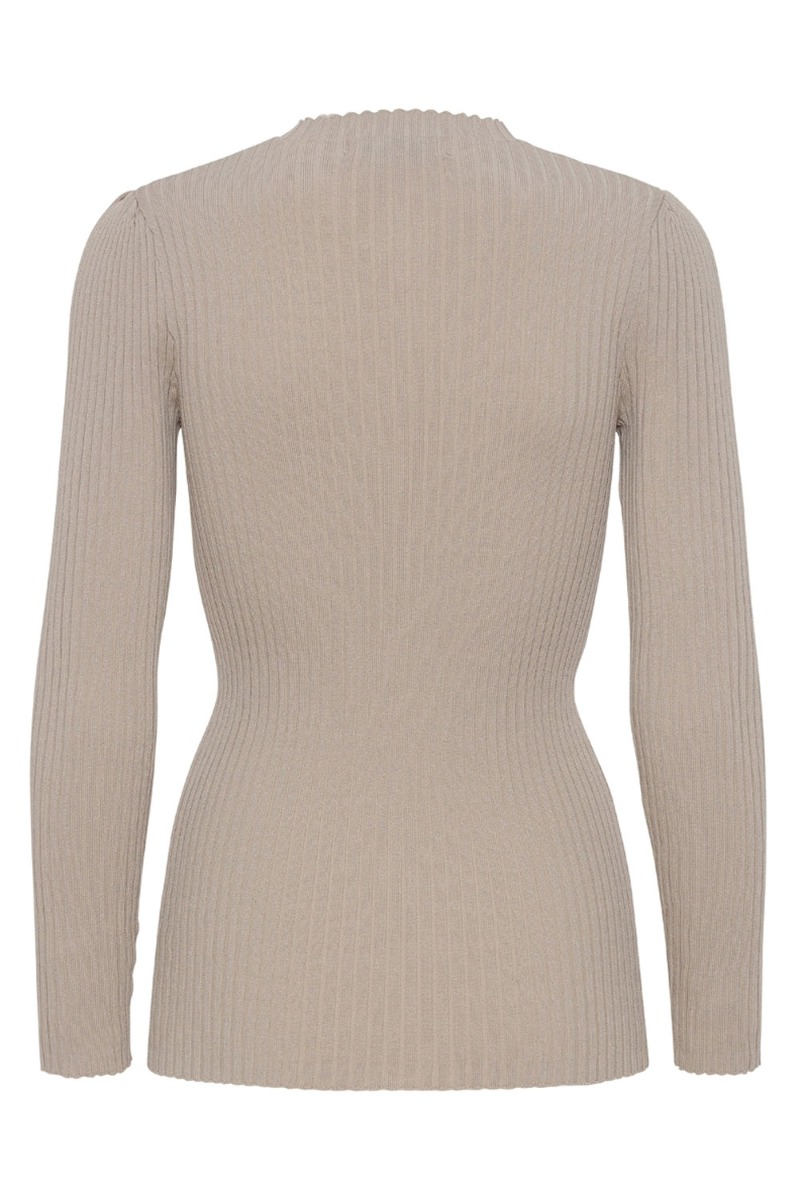 Tætsiddende bluse med lange ærmer fra A-View. Blusen er i ribbet strik med en lille o-neck og masser af stræk. Den kan styles helt afslappet med de matchende bukser eller bruges under dine kjoler til de kølige dage.
