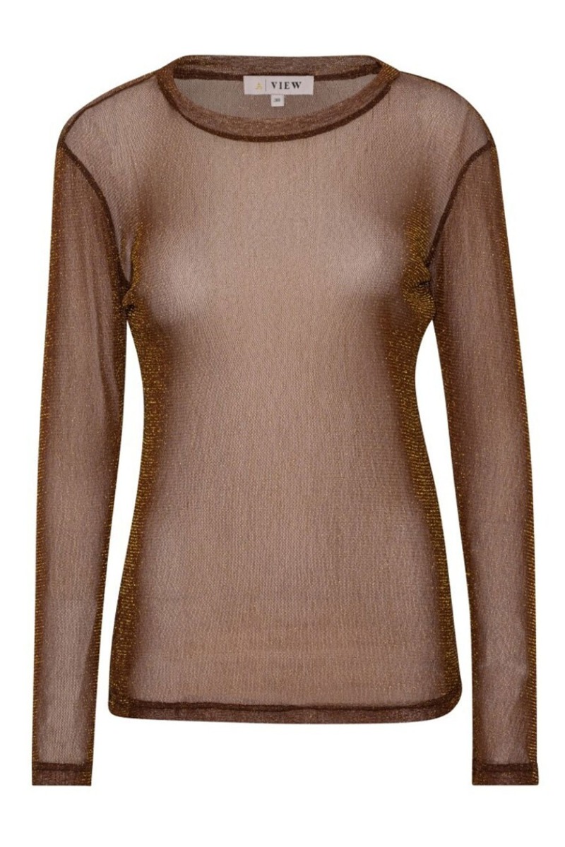 En rigtig julefrokost bluse er kommet fra A-View. Denne er kobberfarvet og med guld farvet tråd vævet ind i stoffet. Det betyder at den ikke drysser eller mister glimmer effekt efter vask. Den er gennemsigtig derfor anbefaler vi at du bruger en top under og den findes i flere farver.