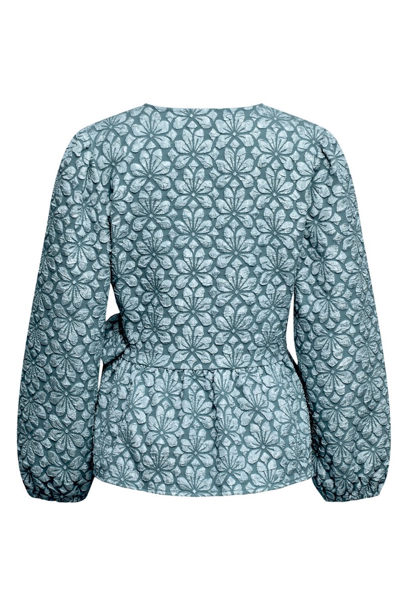 Wauw sikke en skøn slå-om bluse fra A-View. Den er lavet i en smuk blå nuance med lysere shiny blomsterprint. Den er designet med 3D effekt i blomsterprintet, som virkelig giver en smuk detalje på blusen. En flot bluse som er nem at style til både hverdag og fest.