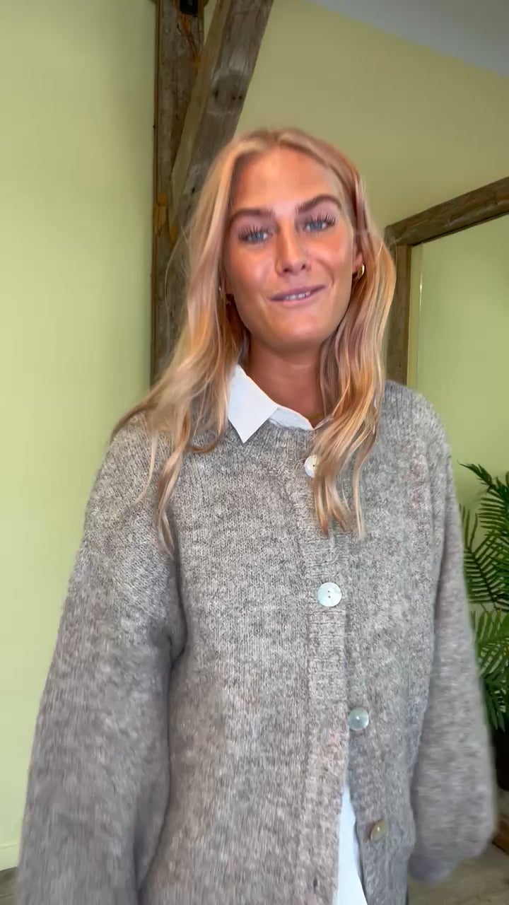 A-View har lavet denne fine strik cardigan i en lys brun farve - helt perfekt til efteråret. Denne cardigan er løs i pasformen og derfor super til at have over en skjorte eller en kjole. Den er lavet i den blødeste kvalitet og findes også i mørkebrun.