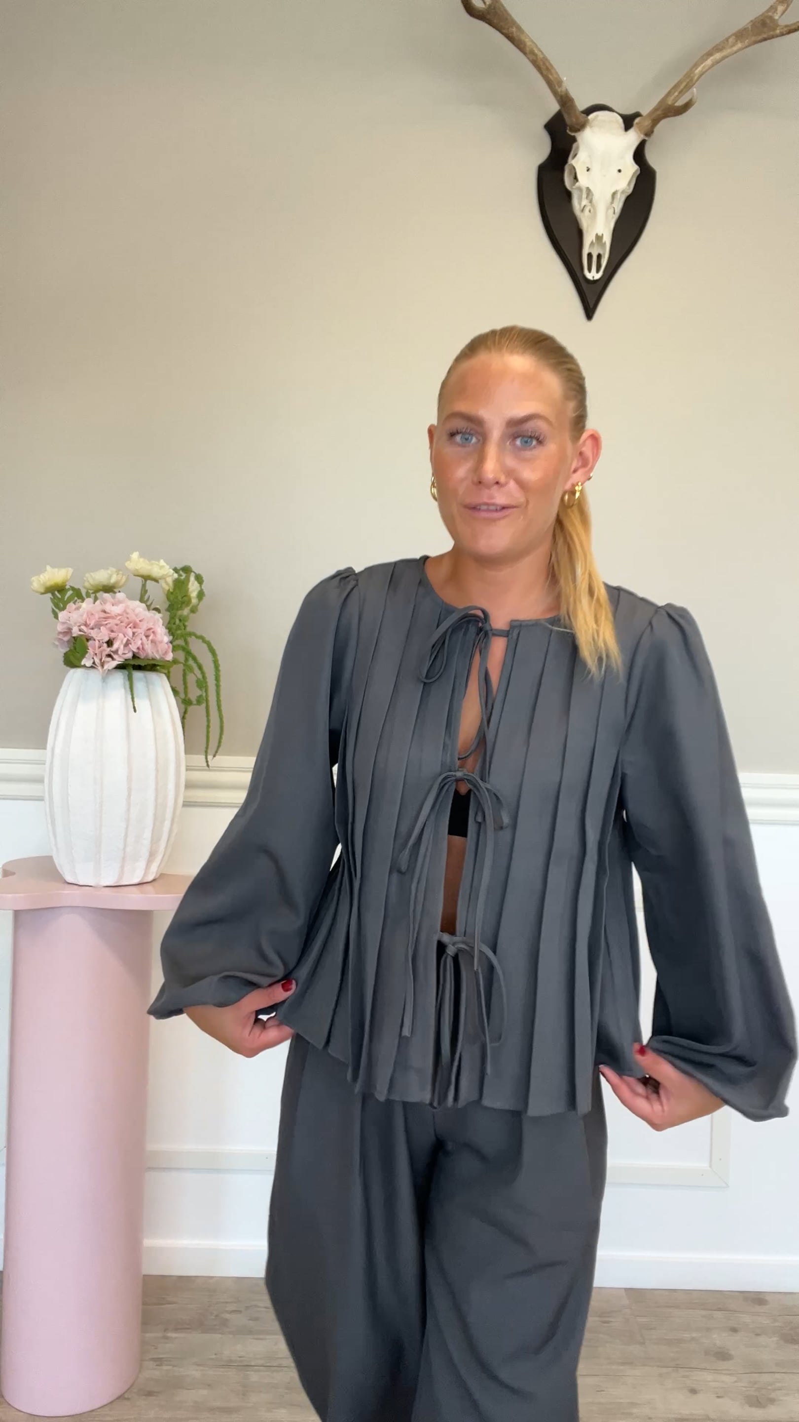 Bluse fra A-View. Denne bluse er designet i den flotteste grå farvenuance! Blusen har virkelig et elegant udtryk, med de fineste detaljer. Ærmer stopper lidt før håndleddet, så der er rig mulighed for at putte en masse accessories til! Style den evt. til matchende bukser.
