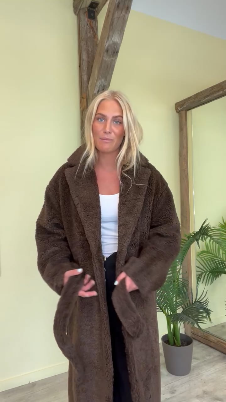 Den blødeste jakke fra A-view! Jakken er lang og dejlig varm i en teddy kvalitet. Den har stor krave, to knapper foran som den lukkes med samt to lommer. En dejlig varm efterårs/vinterjakke!