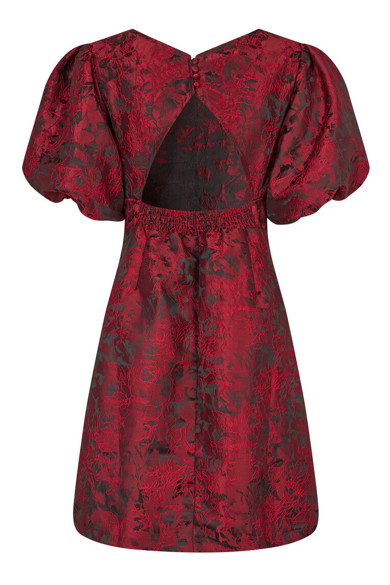 En utroligt smuk og elegant kjole fra A-View er landet i den flotteste røde farve. Kjolen er i et A-snit og sidder fint til i taljen, så man får lidt figur. Den har pufærmer, rund hals og en lille åben trekant på ryggen samt smock. Denne kjole er absolut perfekt til sæsonens fester!