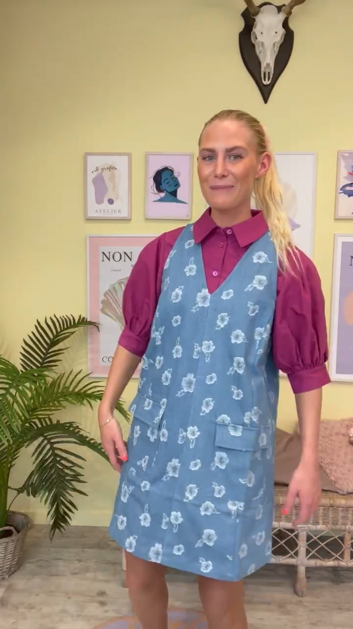 Vi kan simpelthen ikke få nok af spencerkjolen hos Lykke by Lykke! A-View har designet den sejeste denim spencer med et blomsterprint i en lys nuance. Den har et klassisk snit med v-udskæring og brede stropper der gør den anvendelig at style alene, med en t-shirt under eller skjorte alt efter anledning.