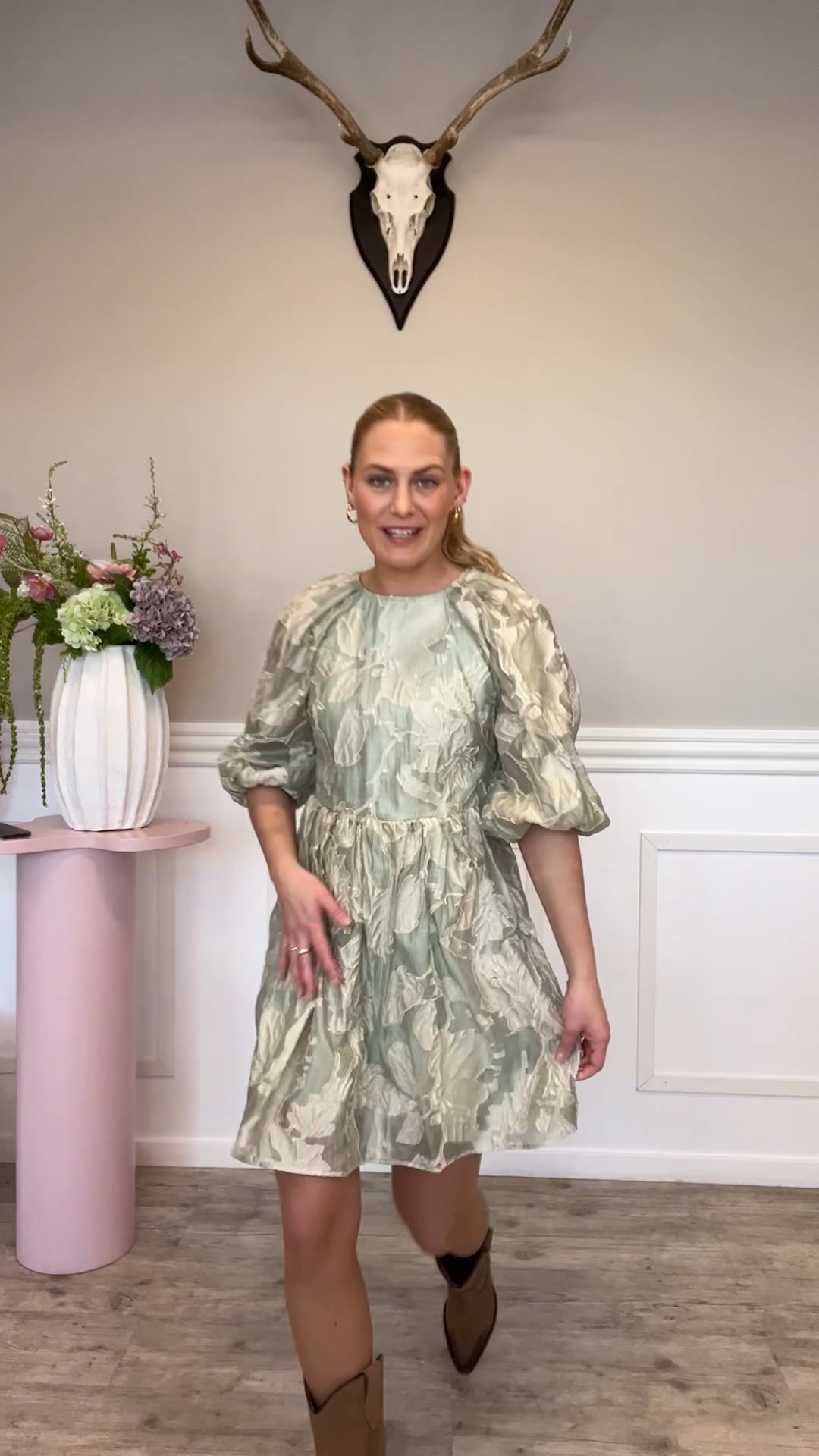 Den smukkeste kjole fra A-View er kommet i denne flotte sarte grønne farve. Den er løs i pasformen og kan nemt bruges til fest med et par stiletter. Den har den fineste detalje bagpå med to sløjfe som giver et sødt og feminint udtryk. Smuk til fester eller til hverdag med et par loafers.