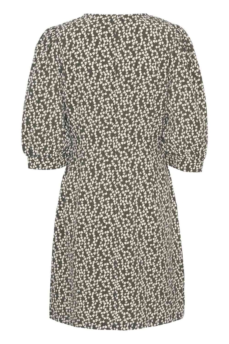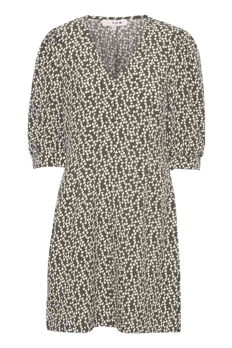 Gå foråret imøde med denne skønne kjole fra A-View. Kjolen har et a-shape med v-udskæring og lynlås i siden der giver en utrolig feminin talje. Bundfarven er grøn med et grafisk hvidt blomsterprint. Ærmerne er 3/4 i et ballon-snit og super anvendelig til både hverdag og festlig anledning.