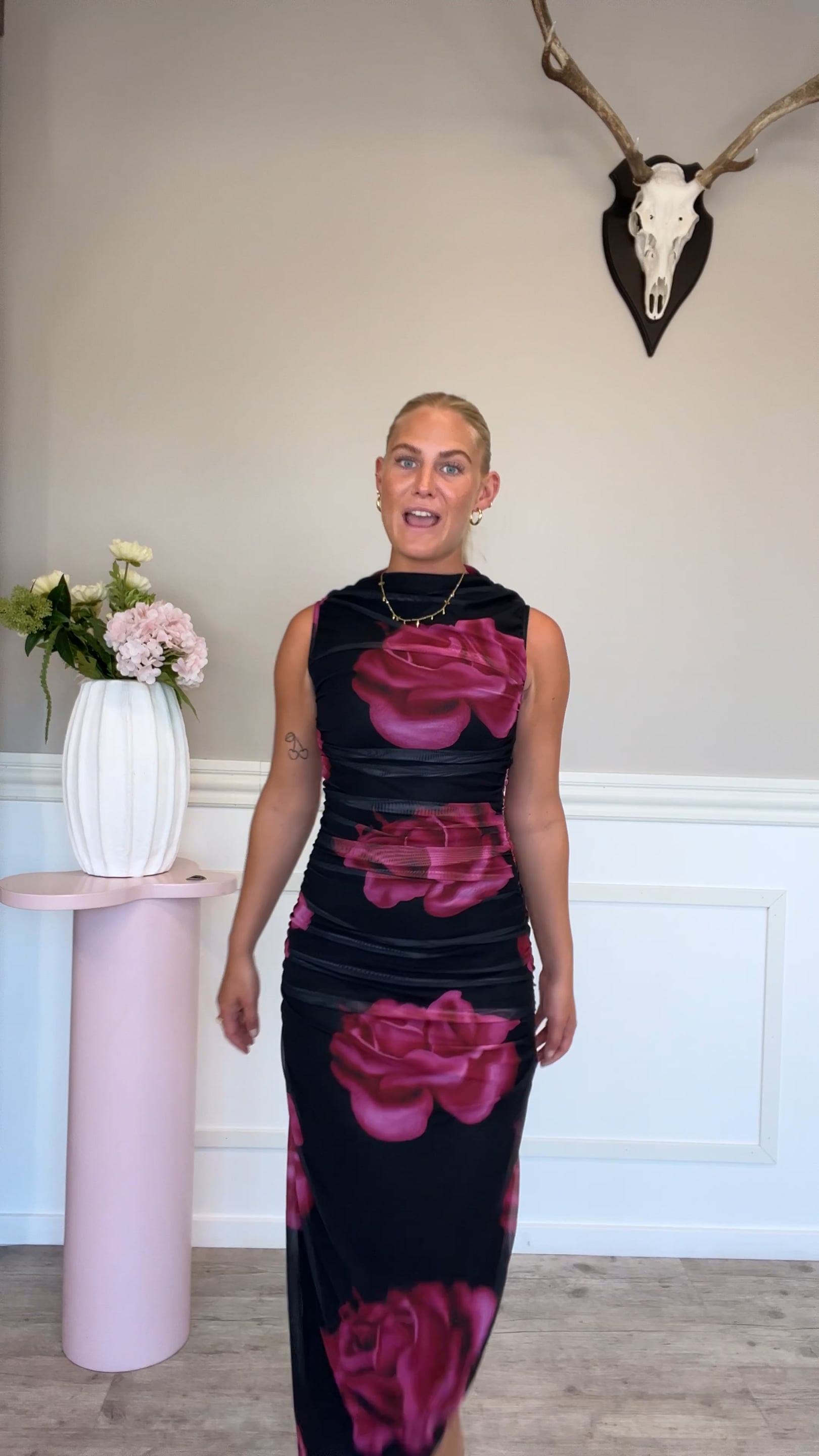 En utroligt smuk kjole fra A-View er landet i den flotteste facon. Denne kjole er lang, sidder tæt på kroppen og har flotte rynkedetaljer i siderne, som bare krammer kroppen på den mest flatterende måde! Kjolen har et lag inderst, hvorpå det sorte lag fremstår som en mesh-kvalitet.