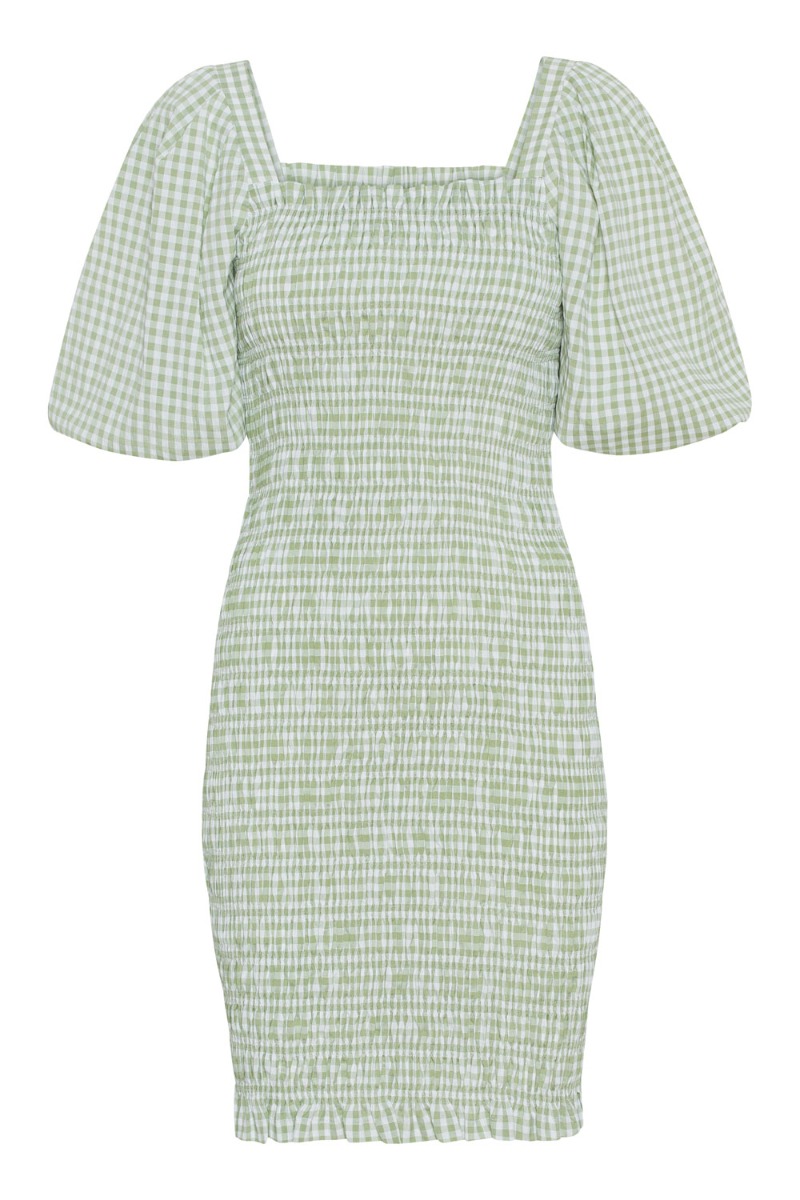 Vores populære RIKKA fra er kommet med et nyt print og vi ELSKER det! Printet er ternet og giver en masse forårs-vibe! Den er tætsiddende med smock der gør kjole utrolig elastisk og behagelig! De korte pufærmer giver en sød detalje og har en smuk firkantet udskæring.