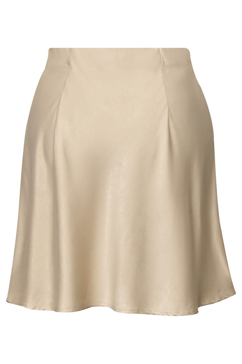 En skøn nederdel i satin look fra A-View er kommet i beige og findes også i sort. Den er er med elastik i taljen og i en dejlig let kvalitet. Den er fin til en simpel t-shirt eller en sommertop.
