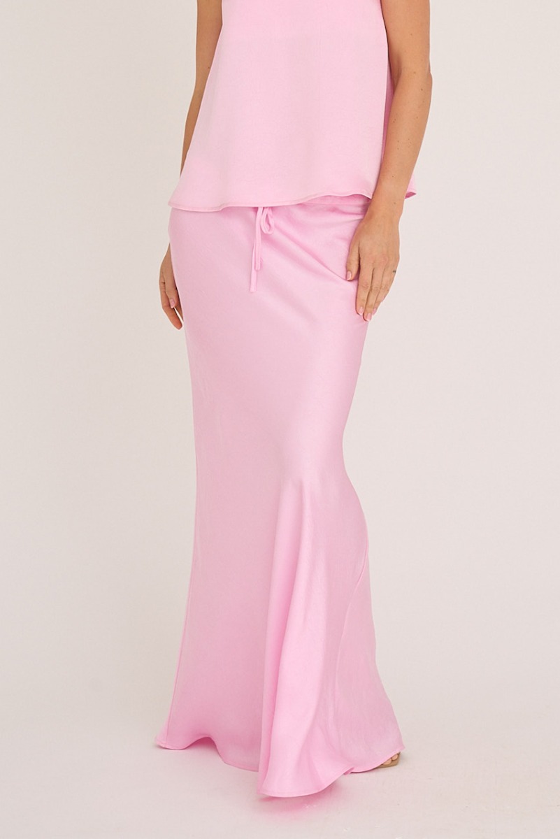 Nederdelen fra A-View har et feminint og elegant udtryk i en smuk bubble-pink farve, der giver et friskt og sommerligt look. Den lange, slanke silhuet fremhæver figuren på en sofistikeret måde, mens det let udsvingende skørt nederst skaber en fin, flydende bevægelse. I taljen har nederdelen en afslappet bindesnor, som både sikrer god pasform og tilføjer et diskret, sporty twist til det ellers elegante design. Samlet set er det en stilren og alsidig nederdel, der kan styles både afslappet og festligt.