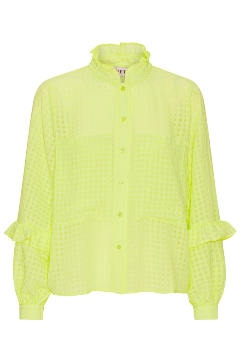 Den sejeste grønne neon farve fra A-View i en fin skjorte model. Skjorten har flæse detaljer ved hals og ærmer. Stoffet en gennemsigtigt og kan bruges med en top under. Ærmerne afsluttes med en knaplukning og ærmerne er ballon formet.