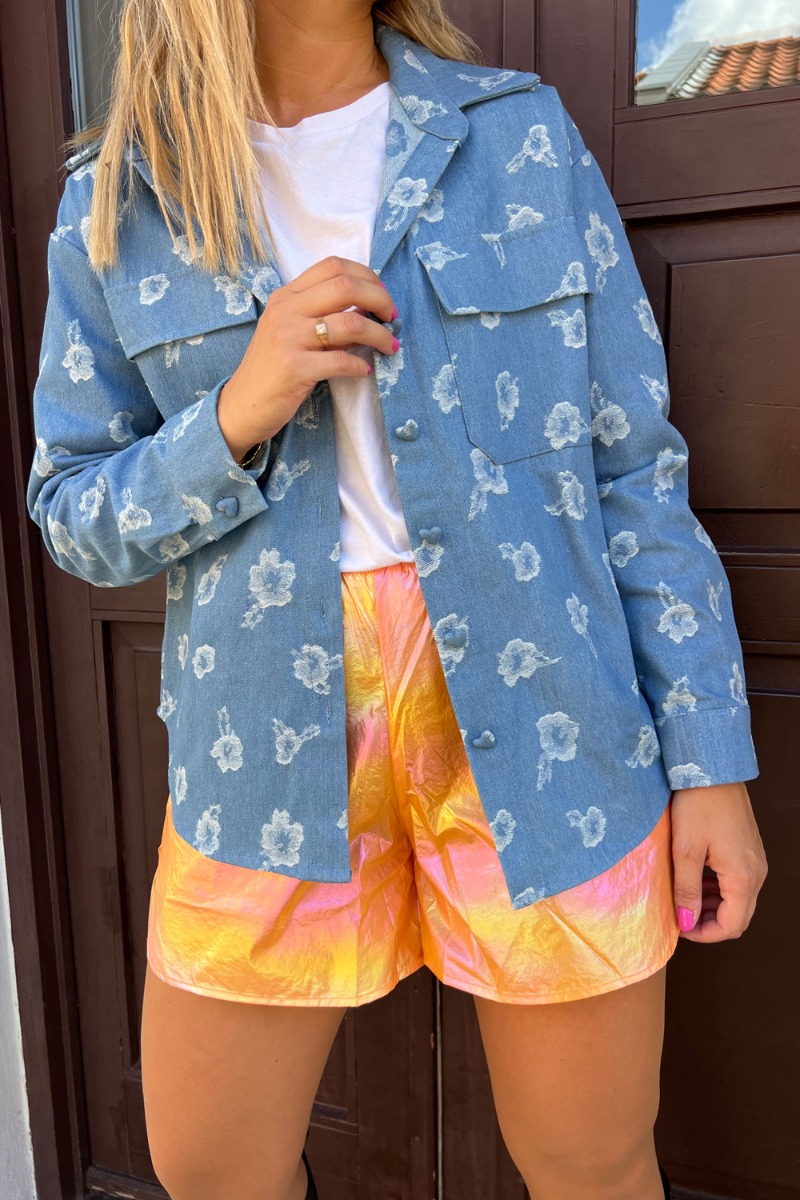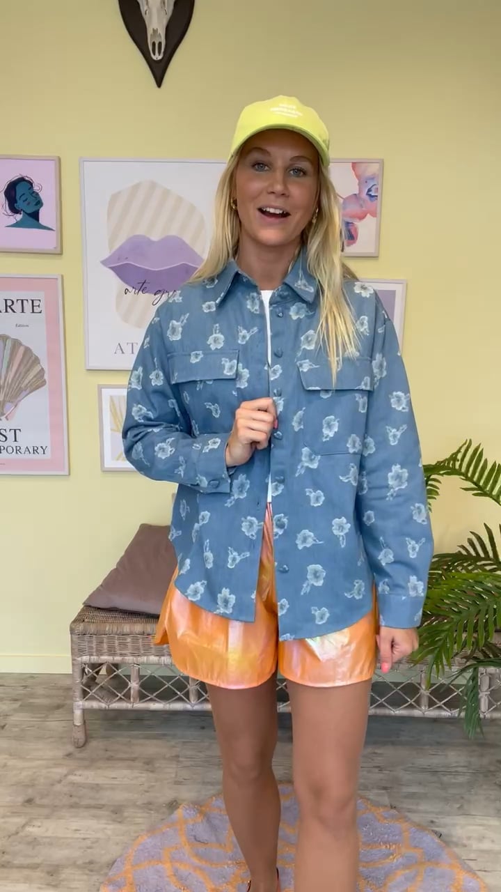 OKAY, tjek lige den her denim skjorte fra A-View! WOW, den er jo for sej med det printet blomsterprint. Skjorten er løstsiddende med stofbetrukket hjerteformet knapper hele vejen ned. Style den lukket eller brug den åben som en lille jakke til de kølige sommerdage.