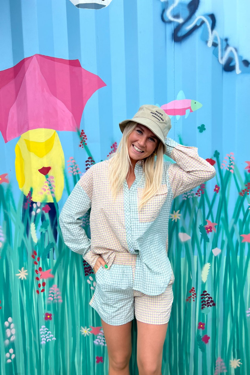 En dejlig skjorte fra A-View i to farvet ternet mønster. Skjorten er rummelig med knapper hele vejen ned og lange ærmer. Den er lavet i en blød behagelig kvalitet og har matchende shorts der skaber et rigtig cool sommerlook.
