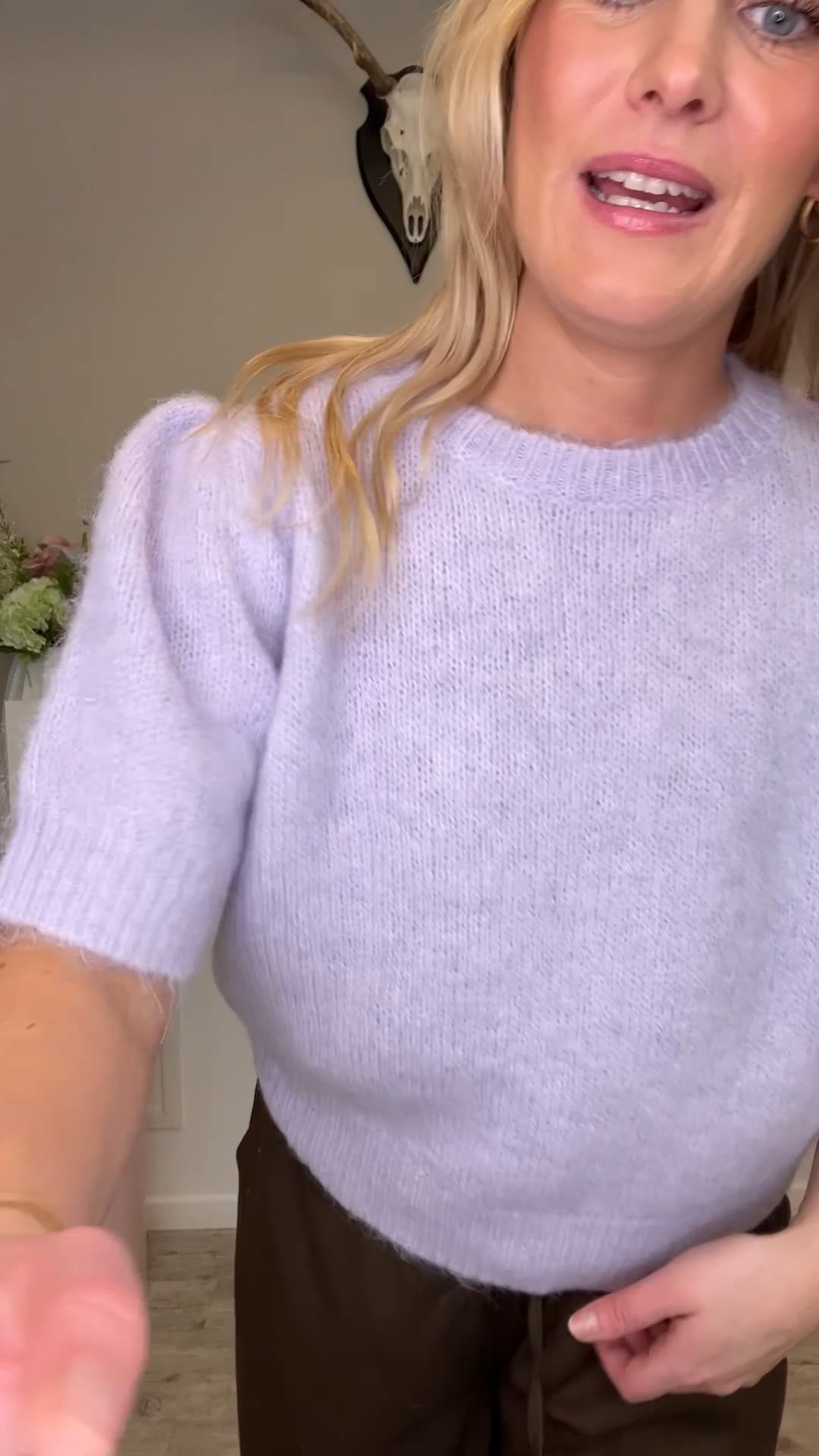 En sød strik fra A-View er kommet til denne sæson i denne smukke lyselilla farve. Den er med korte ærmer og i denne bløded kvalitet som vi kender fra A-View. Den findes i flere var farver og i en langærmet model.