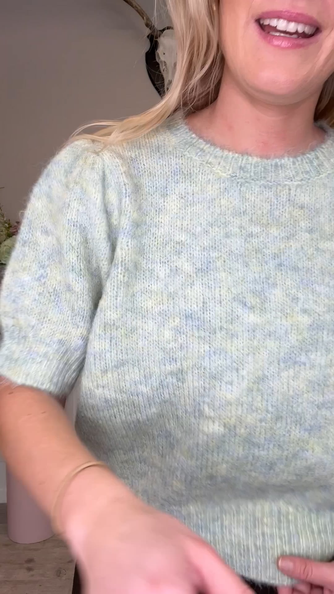 En sød strik fra A-View er kommet til denne sæson i denne smukke grønne farve. Den er med korte ærmer og i denne bløded kvalitet som vi kender fra A-View. Den findes i flere var farver og i en langærmet model.