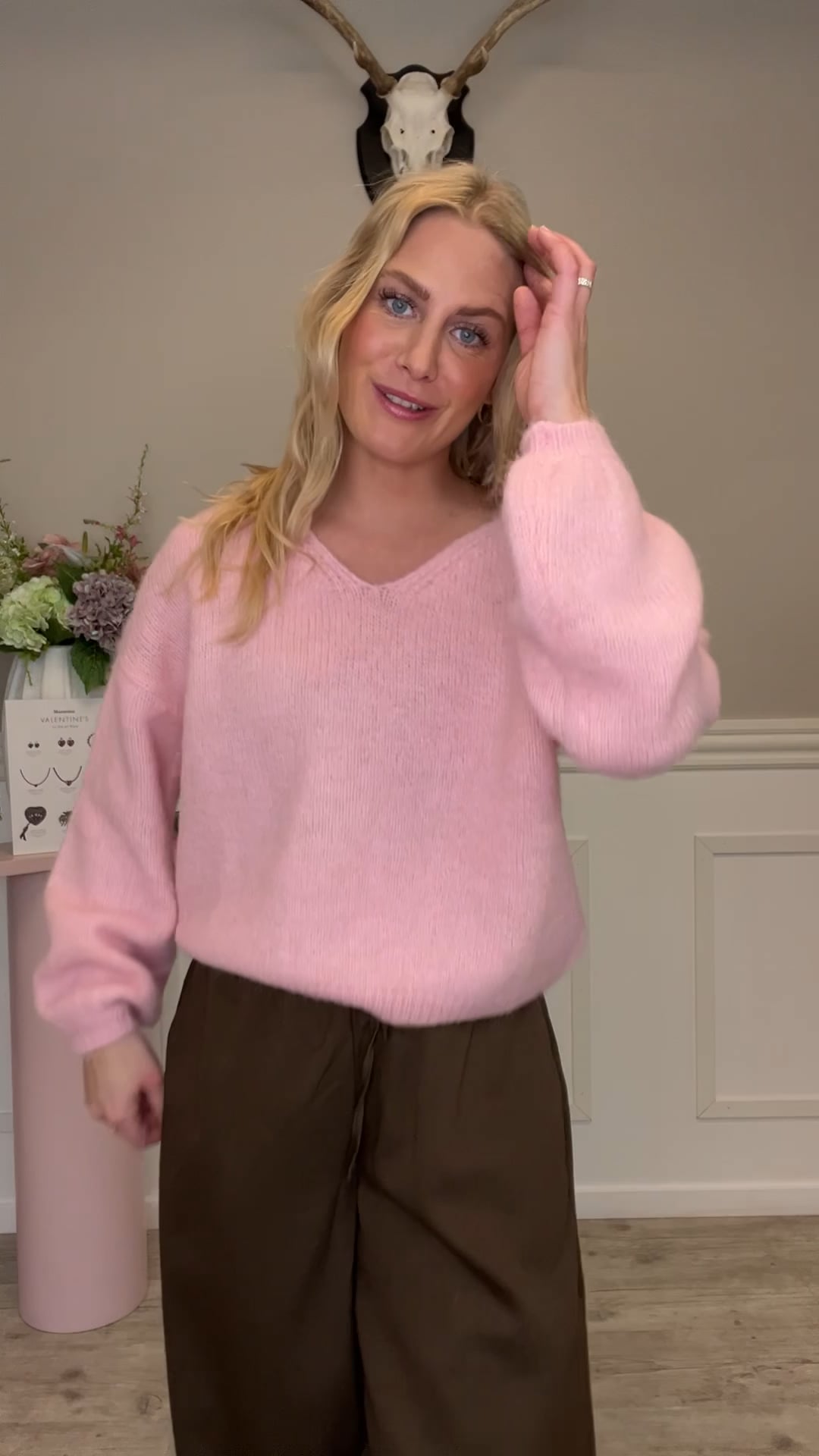 En fin strik fra A-View er kommet til denne sæson. Den er i den smukkeste rosa farve og har en smuk åben udskæring ved halsen. Den findes også i lyseblå og er i den blødeste kvalitet. Nem at style til hverdag med en nederdel eller jeans.
