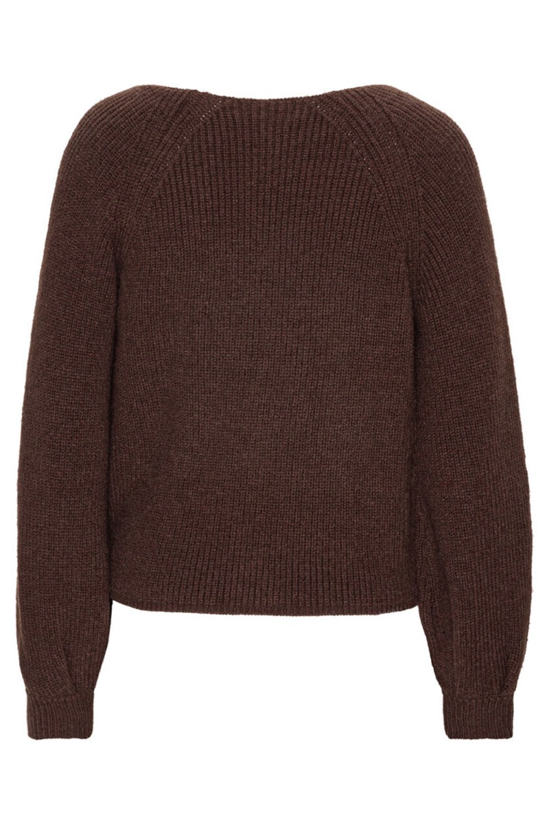 Super sød slå-om cardigan fra A-View i den skønneste chokoladebrune nuance. Den er lavet i den blødeste kvalitet med pufærmer og bindebånd i den ene side. Strikken er er vendbar og kan derfor bruges med V-udskæringen bag til og for til. Styl den til efteråret med både nederdele, jeans og meget mere!