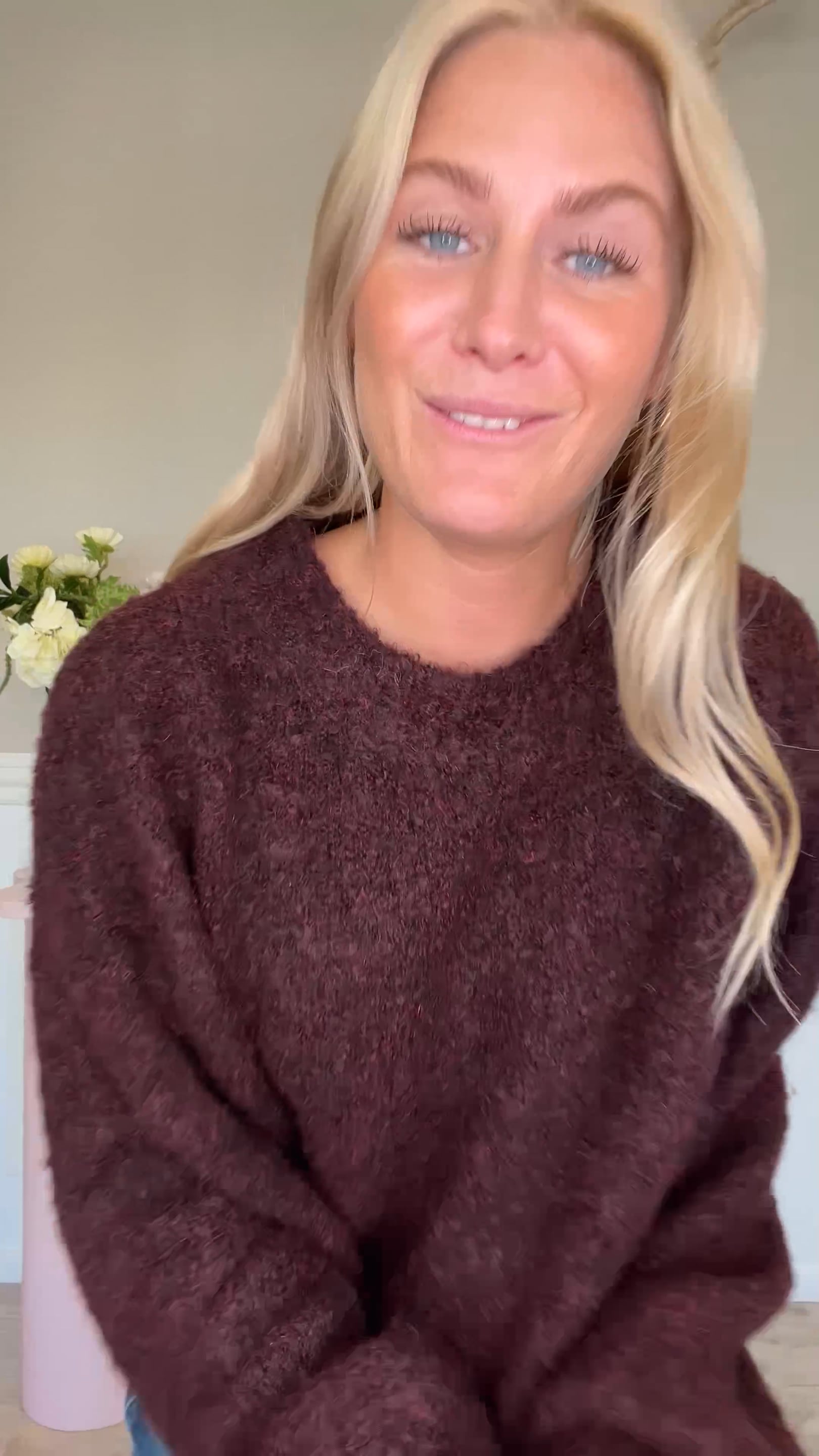 A-View har lavet denne skønne strik i en flot bordeaux farve. Kvaliteten er dejlig blød og den er derfor behagelig at have på hele dagen. Den er løs i pasformen og har rib afslutning ved hals, ærmer og bund. Den findes i flere farver.