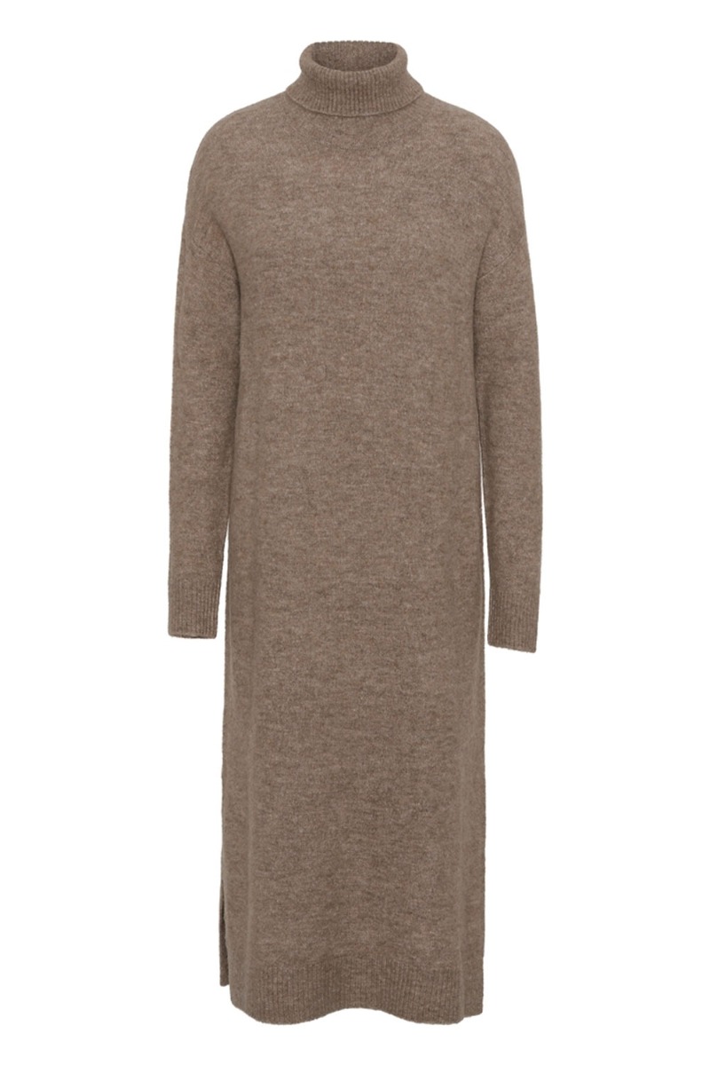 En rigtig lækker strikket kjole fra A-View i et løstsiddende snit med rullekrave. De er lavet i den blødeste kvalitet med lange ærmer og en lille slids forneden i hver side. Den er perfekt til de kølige efterårsdage med en grov støvle.