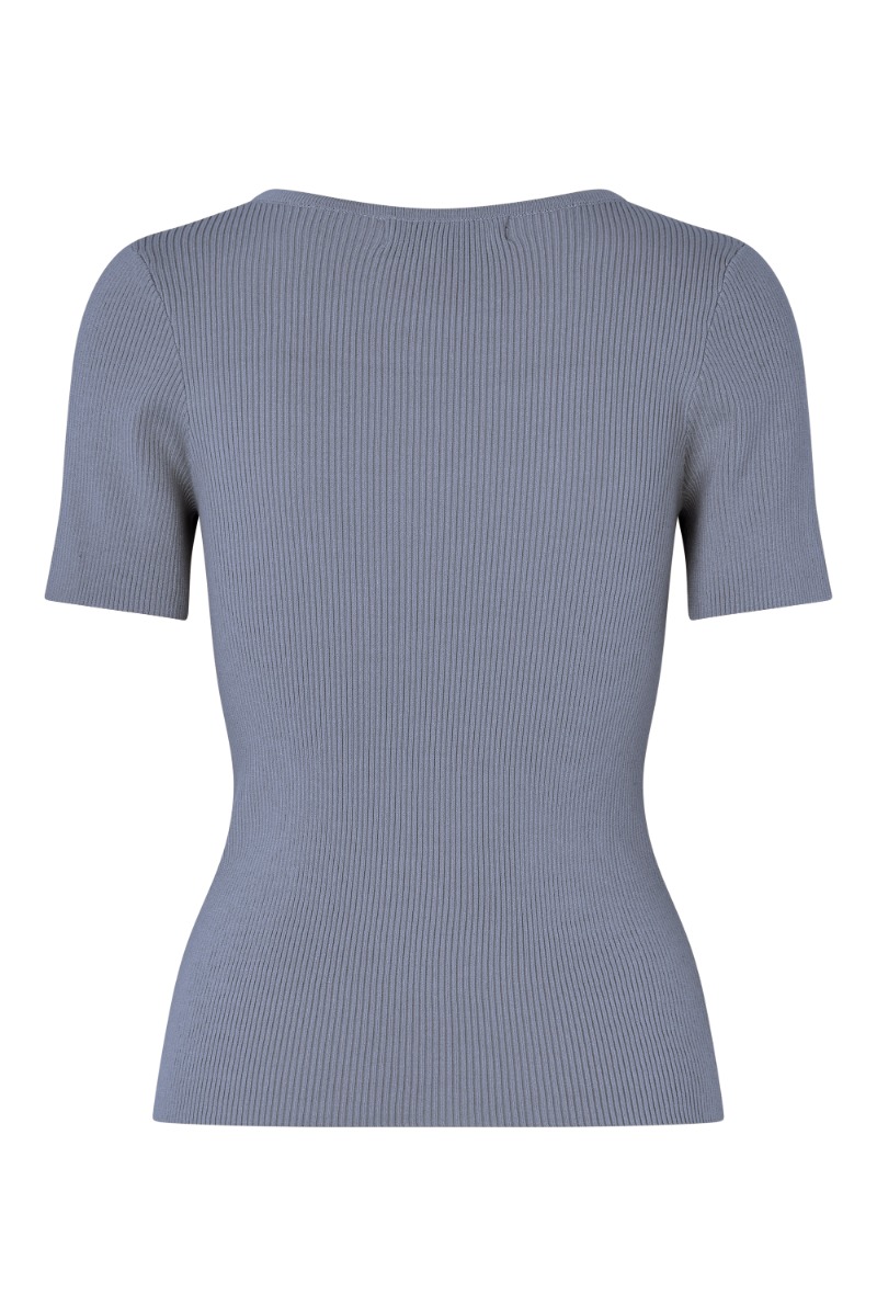 A-View - T-shirt - Rib Knit Short Sleeve Top - Dusty blue