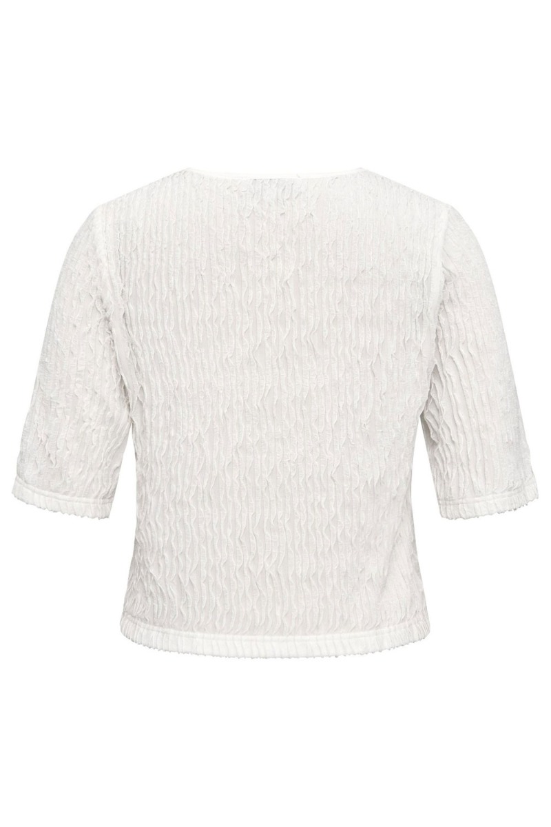 En fin top fra A-View er kommet i hvid med både korte ærmer og sløjfedetalje. Der er masser af struktur i stoffet og giver et fint og let udtryk. Der findes et par bukser så du nemt kan lave et sæt, men toppen kan selvfølgelig sagtens bruges til en anden underdel eller over en kjole.