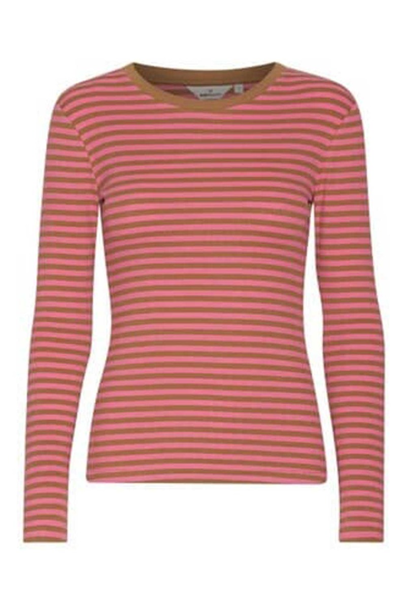 Basic Apparel - Bluse - Ludmilla LS Tee - Stripe Fruit Dove/ Bronze Brown