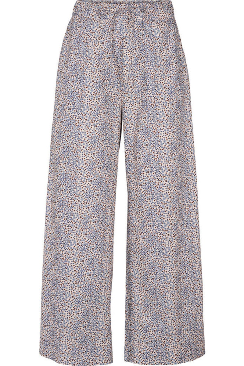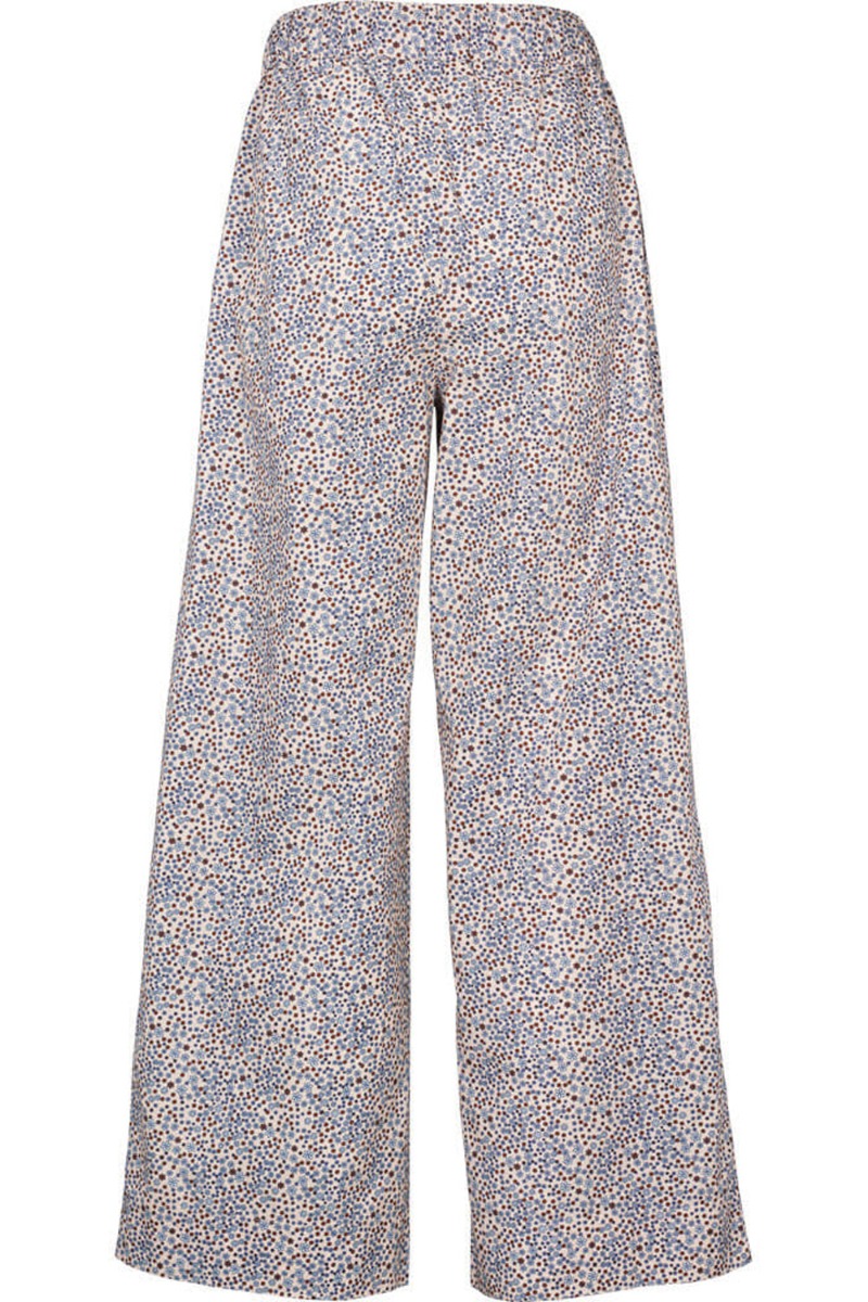 Lækre bukser fra Basic Apparel i et super fint blomsterprint i brune og blå nuancer. Bukserne har bredde ben og elastik og bindebånd i taljen. Der findes en matchende skjorte i samme print så du kan skabe et super fint look eller bruge bukserne til en t-shirt eller ensfarvet skjorte.