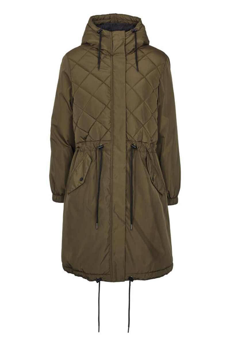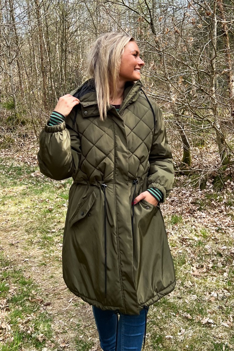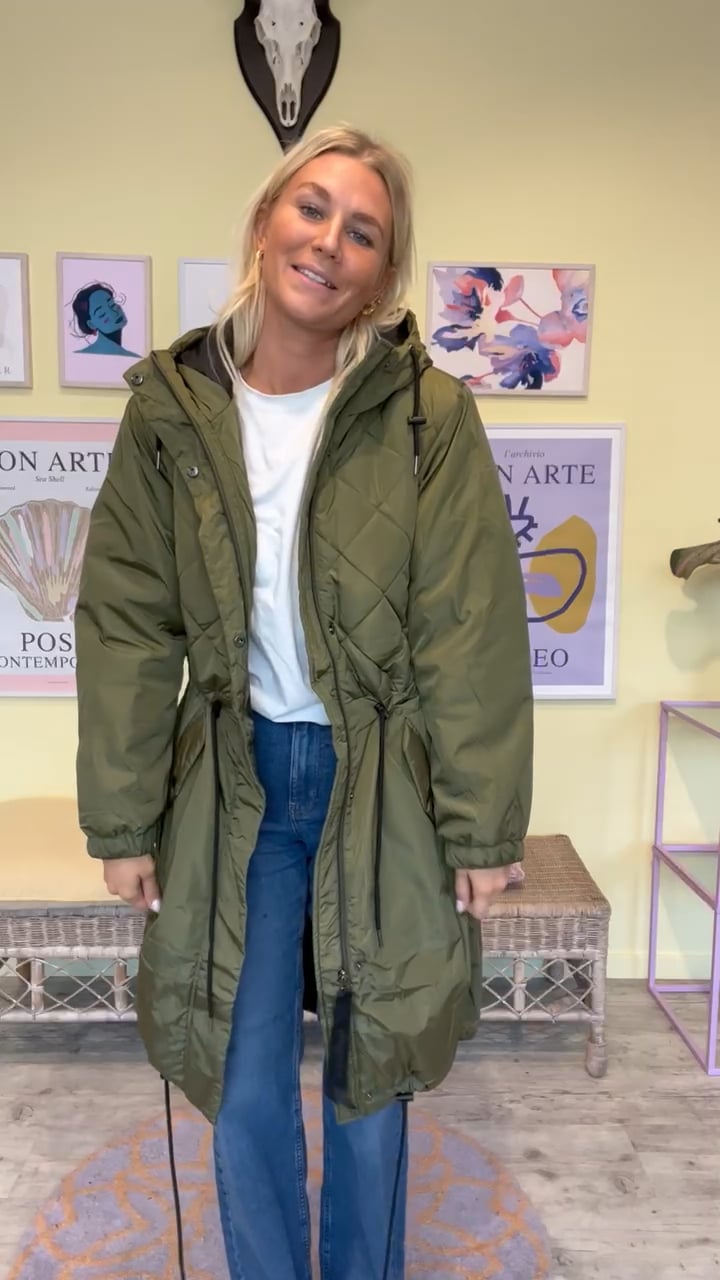 Army jakke fra Basic Apparel i en rummelig pasform. Jakken har snøre i taljen og i bunden der kan justeres efter eget ønske. Den har monteret hætte og er en smule længere bagtil end foran. Jakken har lynlås og knaplukning foran samt lommer og elastik for enden af ærmet. Style jakken med farvet accessories for et dejligt efterårslook.
