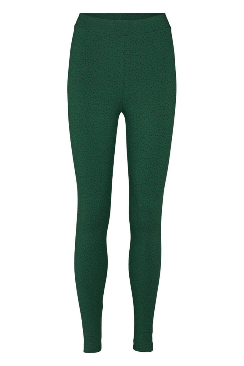De klassiske ELBA leggings fra Basic Apparel i en smuk ny grøn farve med små sorte prikker. Disser leggings er tætsiddende med elastik i taljen i en dejilg kvalitet. De er perfekte at style med den matchende overdel i samme print og kan samtidig bruges under dine kjoler for en ekstra detalje.