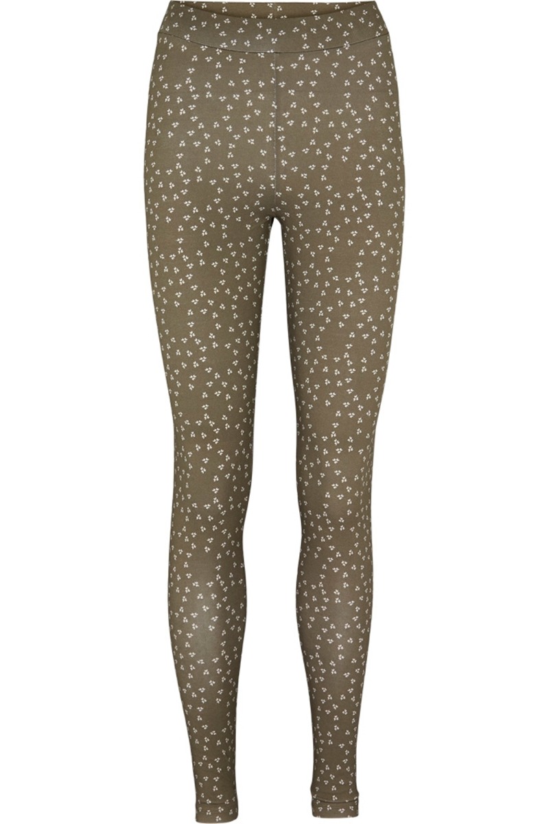 De blødeste leggings fra Basic Apparel her i en virkelig smuk grøn med hvidt print. De er en bred elastik i taljen der sikre at de sidder godt.