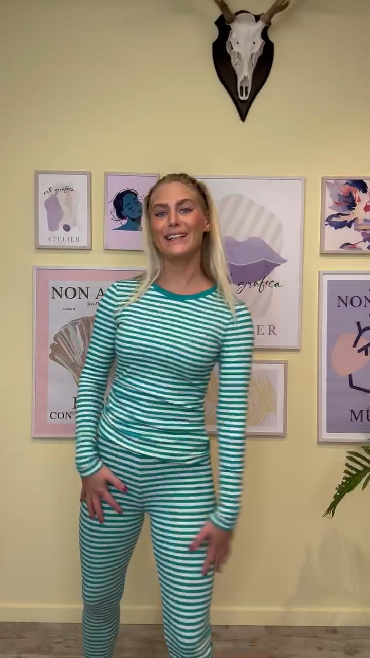 De skønneste ludmilla leggings fra Basic Apparel i stribet mønster med matchende bluse. Disse leggings er tætsiddende i en blød rib kvalitet med stretch og en bred elastikkant i livet. De er så dejlige til weekendshygge og kan samtidig dresse dine kjoler ned til hverdagsbrug.
