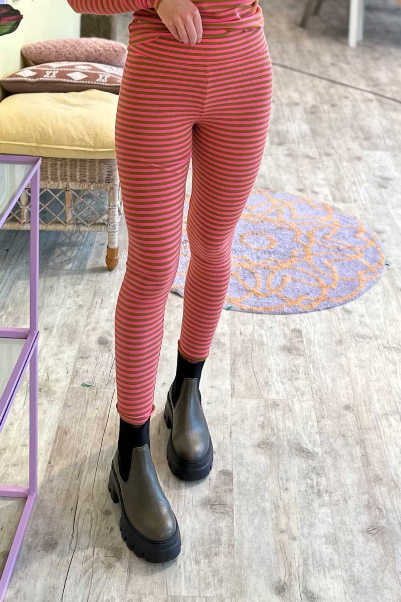 Skønne leggings fra Basic Apparel i de velkendte striber. Disse leggings er lavet i en blød ribkvalitet med stretch der er perfekt til de hyggelige efterårsdage. Style dem med den matchende bluse i samme print eller brug dem under en kjole.