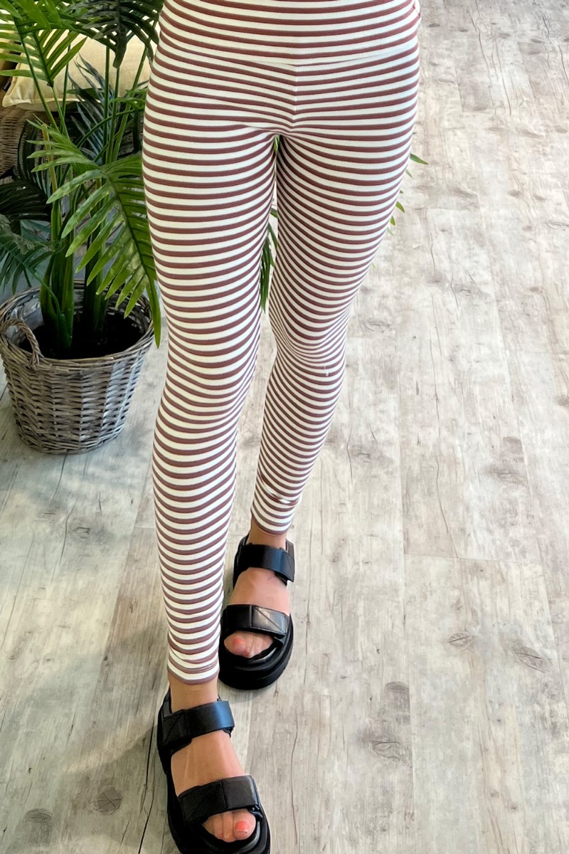 leggings med striber i hvid og brun
