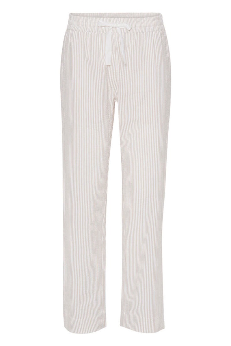 Dejligste natbukser fra Basic Apparel der er den helt PERFEKTE julegave til en du holder af eller måske bare dig selv. Bukserne er stribet i sand og hvid med elastik i livet og snøre. De er så fine at style med den matchende natskjorte.