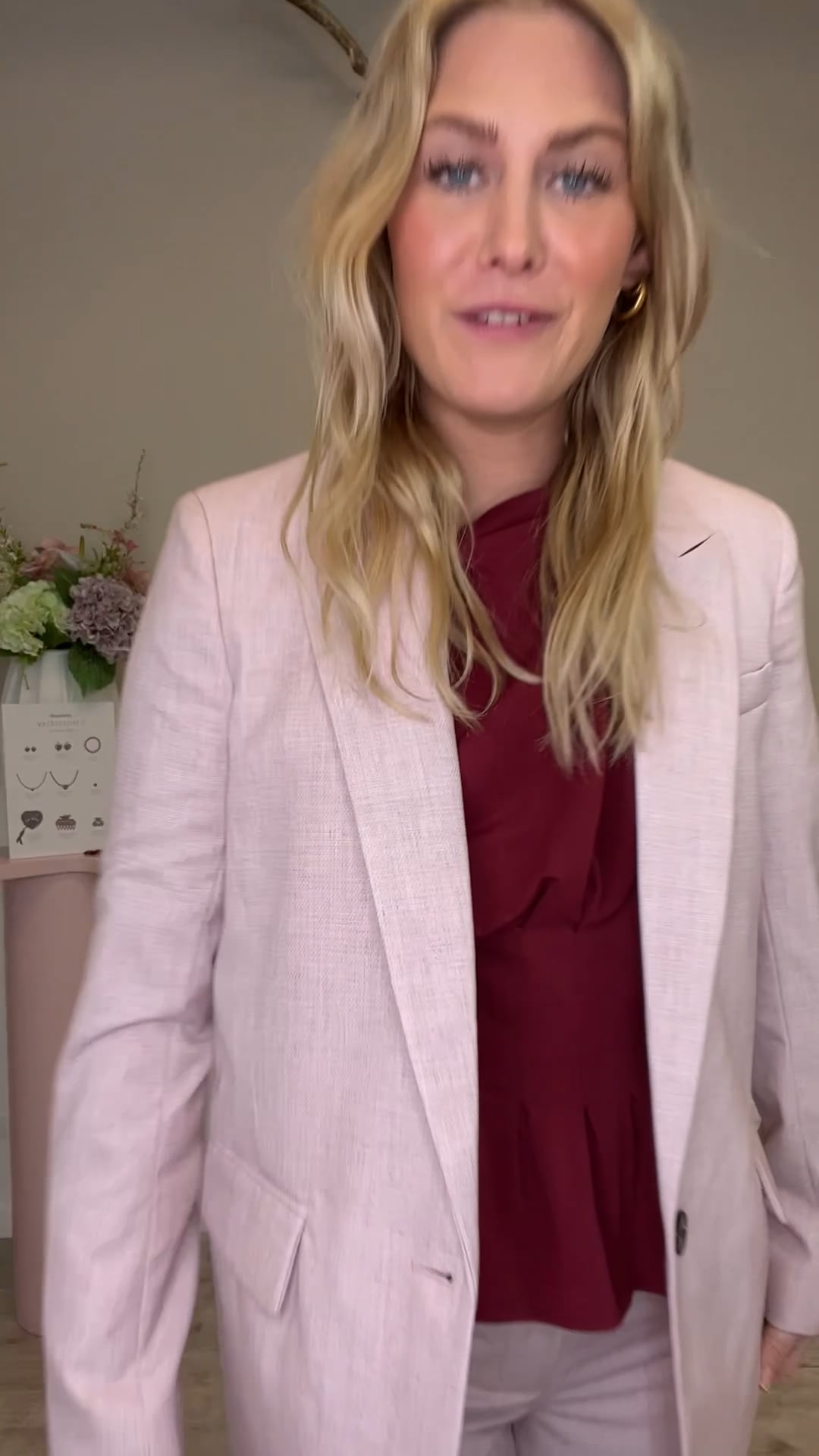 Denne lyserøde blazer har et klassisk, elegant snit med fine revers og enkel knaplukning, der giver et tidløst look. Den let strukturerede kvalitet tilfører et eksklusivt udtryk, mens den lange pasform gør den nem at style både til hverdag og fest. Brug den med jeans og en top for et casual outfit, eller match den med skræddersyede bukser for et mere sofistikeret sæt. Blazeren fungerer også perfekt som et let lag over en kjole. Et feminint statement-piece, der løfter garderoben sæson efter sæson.